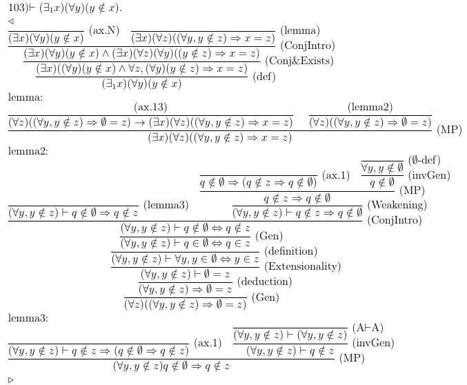 >>10598 >coq в 1000 раз популярнее А ничего, что там MLTT вместо логики первого порядка, и реализуя NBG поверх MLTT, ты занимаешься чем-то уровня натягивания совы на глобус?