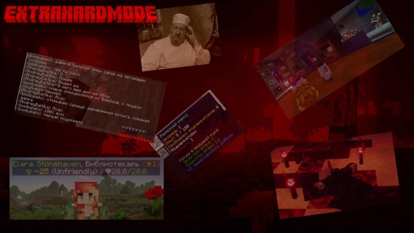 Наш сервер будет интересен тем кому приелась ванилла с её упором на адвенчур-фентези для школоты, и тем кто уже вдоль и поперёк изучил Create и устал от механизмов ради "механизмов". Сервера ориентирован на угрюмое выживание в селе, питья пивка с пацанами после заводика и в целом на социальное взаимодействие между игроками. На сервере нет телепортов, хомов, элитр, передвигаться можно на лошадях и поездах.