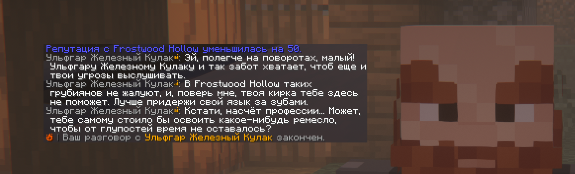 Сап, эмце. Написал плагин, полностью изменяющий взаимодействие с жителями. Они предлагают квесты игрокам, имеют реальный инвентарь, производят уникальные предметы, имеют типы личности, умеют разговаривать (лол). Для генерации квестов используется ИИ (да, я добавил в кубач генеративный ИИ), ну в общем, если интересно, то чекай Modrinth. Планирую запилить сервак с этим плагином. Рейтуйте, анонче.