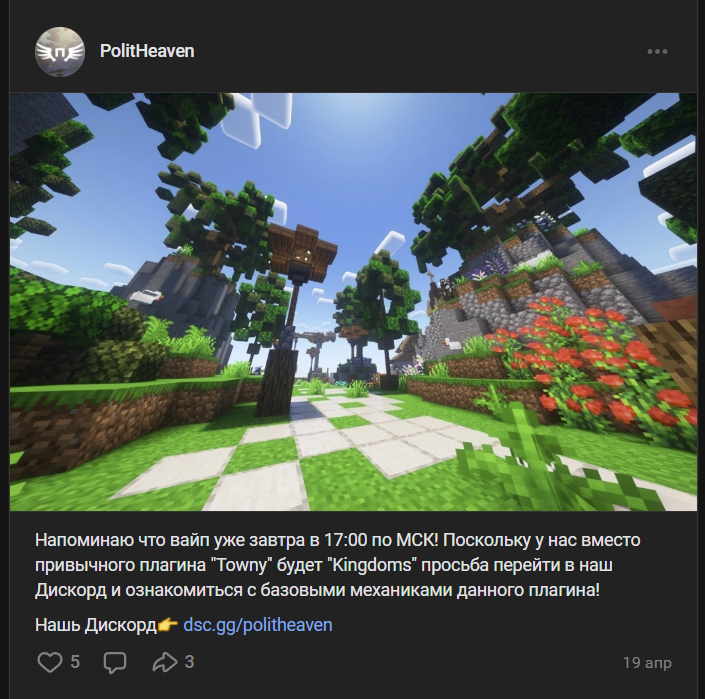 - Дейлимайн/Политфилд и прочие подобные около-рп проекты. НУ тут на самом деле можно понять часть игроков, которые действительно кайфуют от симуляции "реального" политического мира внутри майнкрафта. Но я слышал, что долго эта идиллия никогда не сохраняется и положение на сервере всегда из вайпа в вайп перерастает в абсурд. Чтобы подышать или пукнуть тебе обязательно нужно будет !зарегистрировать здание в обсуждении ВК, на которое админы тебе ответят спустя ну неделю. В ответе укажут, что оно уродское и не хватает три блока печек для завода и снова уйдут в афк на неделю. Администрация долбоёбов, ненужная бюрократия, кумовство в админсоставе. Если фанатиков тут держит пубертатный период и желание воплотить, политические амбиции, помноженные на моральную необходимость окупить донат с маминой карточки, то что держит ту самую прослойку адекватных игроков здесь - мне искренне непонятно. Вопрос адресую той части игроков, которая возмущается рп-составляющей, но все равно с каждым открытием заходит туда отдавать гроши за донаты. Зачем вы это делаете?)