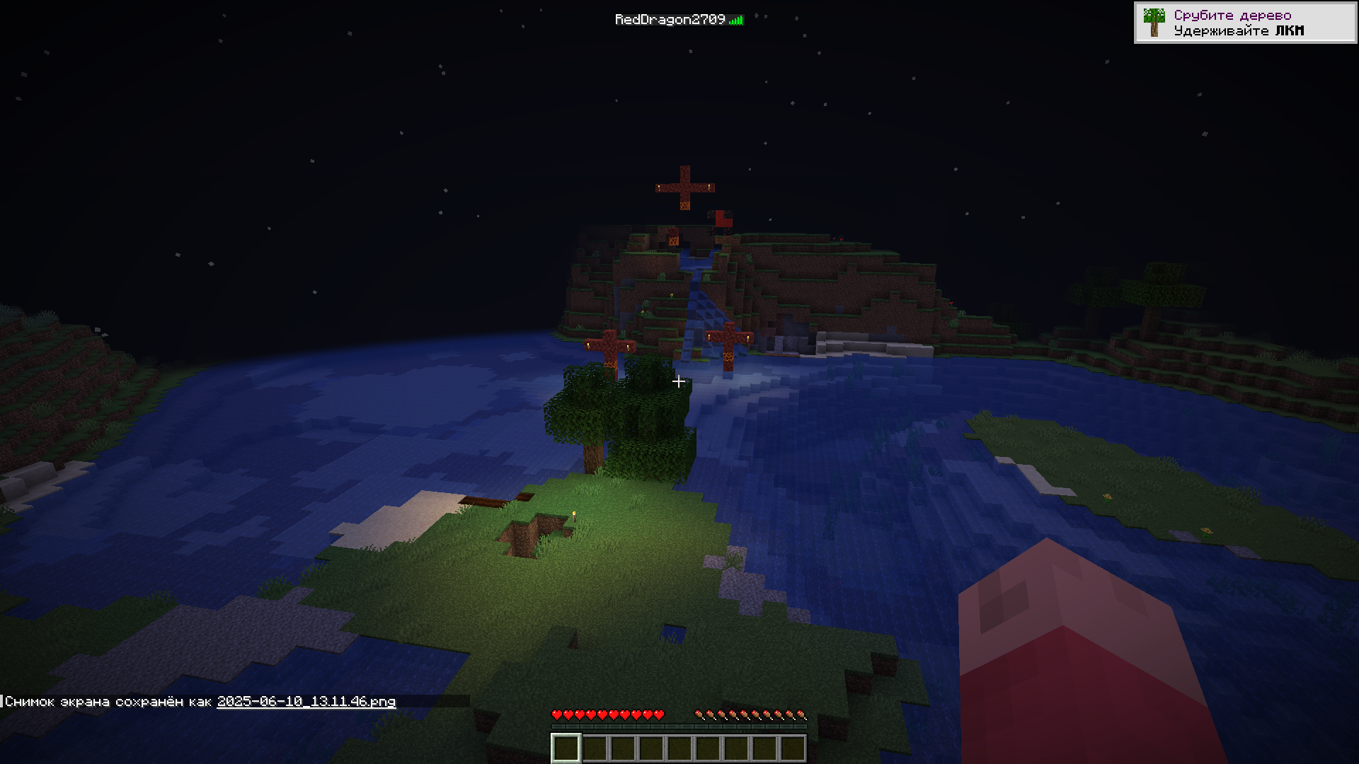 Решил с другом поиграть в Майнкрафт на сервере, созданном на Aternos. Сервер запустился, я зашёл раньше друга на только-только захощенный сервер, на удивление была ночь (всегда по умолчанию день), и вдалеке я увидел одинокий факел. Мог бы я это списать на находящуюся рядом деревню на горе, но он был очень далеко от неё. Также я упал в ямку, в которую стекала вода, которая была неестественной, будто вырытой игроком + когда я поднялся на гору, я увидел это (скриншот). Потом сервер сам закрылся, а после перезахода сид и вовсе поменялся на "нормальный". У кого-то ещё такое было?