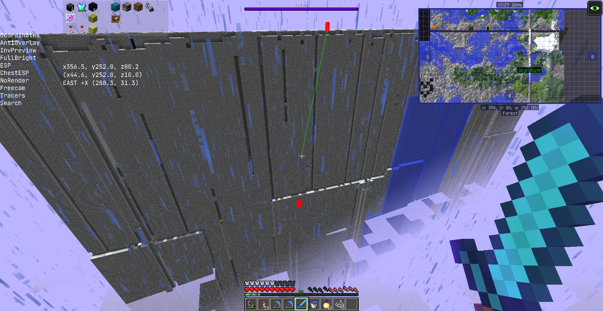 хочу сделать уточнение. я хоть и играю в майнкрафт с 2013 года, но ни разу его не проходил. моя игра в мире заканчивалась либо на очивке "алмазы!", либо пока мне не надоест искать миф. на том сервере у меня была цель пройти его с друзьями, но видимо у них была совсем другая цель и им было абсолютно пох. даже один чел иксрей юзал и не боялся этого скрывать, за что был забанен мной.