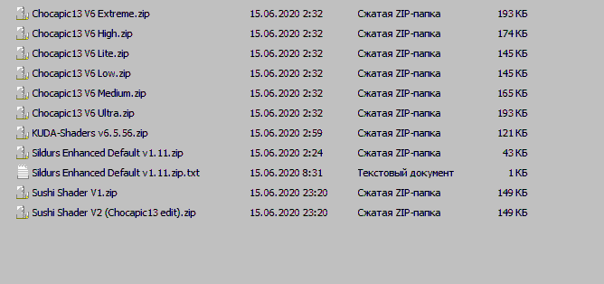 Чокапик V6 Экстрим - НОРМАЛЬНО, лунные лучи через траву, но ошибочные зелёные полосы. Пробуем на 1.14.4 с дальностью 4 - РАБОТАЕТ! Чокапик V6 Хай - НОРМАЛЬНО, лунные лучи через траву, но ошибочные зелёные полосы. Пробуем на 1.14.4 с дальностью 4 - РАБОТАЕТ! Чокапик V6 Лайт - НОРМАЛЬНО, вода гладкая, рябь крупной клеткой, облака стандартные (может переключаются). Пробуем на 1.14.4 с дальностью 4 - РАБОТАЕТ! Чокапик V6 Лоу - НОРМАЛЬНО, вода гладкая, рябь крупной клеткой. Пробуем на 1.14.4 с дальностью 4 - РАБОТАЕТ! Чокапик V6 Медиум - НОРМАЛЬНО, вода гладкая, рябь крупной клеткой. Пробуем на 1.14.4 с дальностью 4 - РАБОТАЕТ! Чокапик V6 ультра - А ВОТ ЭТО НОРМАЛЬНО. Пробуем на 1.14.4 с дальностью 4 - РАБОТАЕТ! На 1.14.4 с дальностью 4 не вполне ясно, чем они отличаются, так что и Лайта вроде достаточно.