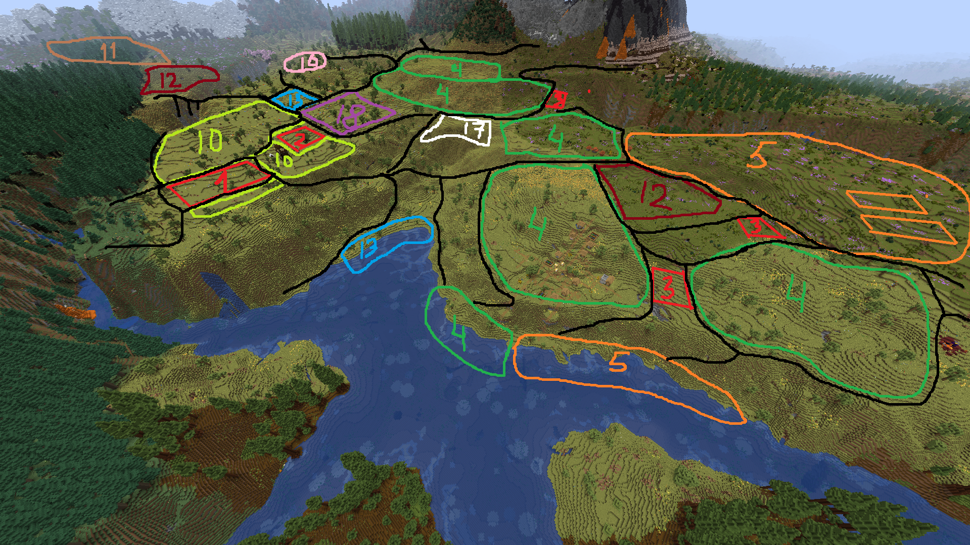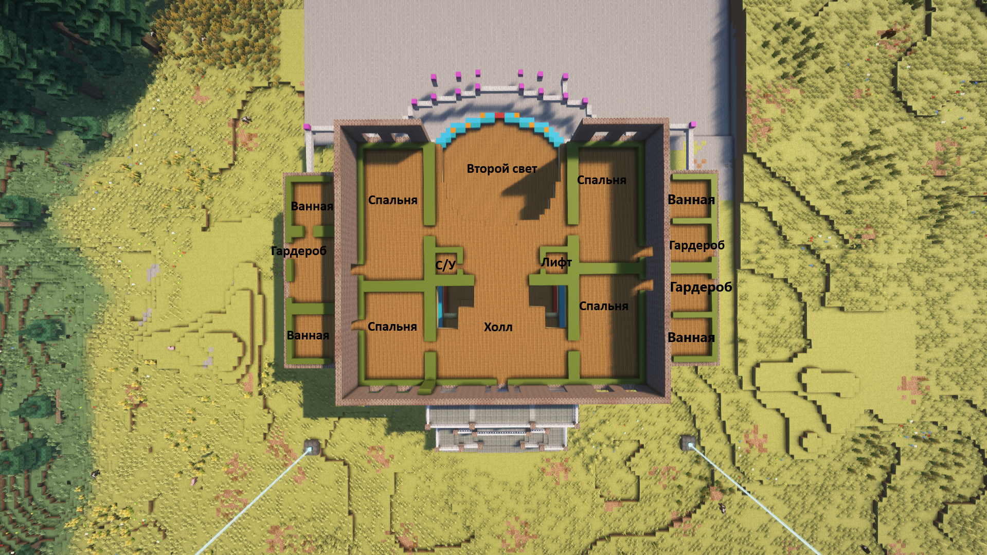 Собственно, список: 1. Основной дом - кирпичный двухэтажный особняк в английском стиле, с мансардой и полноценным цоколем; 1.1 Кроме очевидных комнат, в доме должны располагаться: библиотека, бильярдная, каминная, курительная, кинотеатр, комната хобби, медицинская комната; 2. Гостевой дом - одноэтажный кирпичный дом, недалеко от основного, разделен с ним садом/дворовой территорией. С отдельной кухней и небольшим складом; 3. Дома (3-4) обслуживающего персонала - маленькие кирпичные домики для персонала мастерской, кузницы, виноделен, сельских угодий и садов, конюшен и ферм а так же садовников. С отдельными кухнями и небольшими складами; 4. Собственно, поля разных агрокультур, большие, с системой иригации. Сюда стоит добавить теплицы, отдельные виноградники, рассадники тростника, кактусов, тропических культур, фермы водорослей, мидий у побережья; 5. Ферма скота, мелкого, крупного, так же конюшни. Здания ферм, пастбища, поилки, кормушки, обслуживающие помещения. Сюда стоит добавить пасеку поодаль от основной территории среди лугов и леса а так же рыбную ферму; 6. Защищенный склад, один этаж плюс полноценный цоколь. Предполагается хранилище несъедобных позиций. Вход как снаружи, так и снизу по подземному туннелю. К этому так же будут относиться несколько амбаров; 7. Замаскированный в глубине скалы бункер с отдельным подземным входом от основного дома, аналогично складу; 8. Различные водонапорные вышки (сюда включу станции по фильтрации воды), освещение, прочие декорации для "реалистичного" вида; 9. Некоторые станции выработки электричества - скорее пара ветряков, солнечные батареи, генераторы; 10. Парковая зона с декорациями, ландшафтным дизайном, пр.; 11. Декоративная "вырубка леса", такой же "карьер" песчаного/каменного материала для строительства; 12. Мастерская широкого профиля с собственными генераторами электричества (солнце, свет, вода - так что стоит располагать у реки). Точнее - кузница, токарный профиль, деревообрабатывающий, строительный, отделочный, ремонтный, и пр.; 13. Автопарк со стоянкой и обслуживающим помещением. Подальеше - вертолетная площадка, у реки - причал. Да, бензин был бы в дефиците в реальной ситуации, но ничто не мешает иметь несколько десятков тонн бензина и авиатоплива в цистернах; 14. Достопримечательности - тропы в горы к горячим источникам, водопадам, пещера со следами древних людей, затерянные в лесах руины замка. Опционально, по завершению основного строительства; 15. Система канализации, как с основной её функцией так и каким-то очередным запасным выходом. Можно пустить две параллельные ветки подземных ходов, очевидно, разделенных между собой - для отходов и безопасного перемещения между критической инфраструктурой; 16. Церквушка с небольшим родовым кладбищем или склепом в скале; 17. Площадь для сбора персонала и жителей; 18. Место для занятий спортом - площадка с различным инвентарем, корт для тенниса или чего-то подобного; 19. В горах - лыжный спуск, конечно, без подъемников.