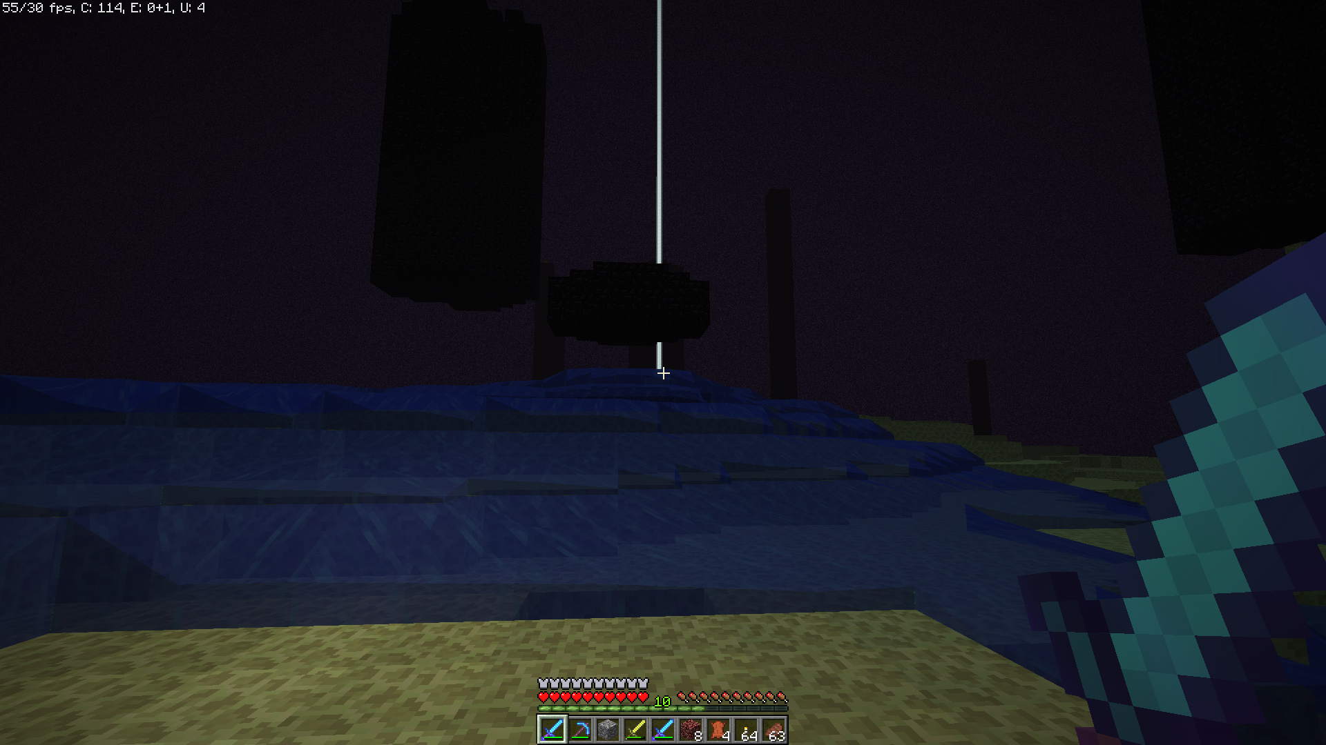 Итак, заспавнился я на острове с пумами. Сделав исключение выставил нулевую координату, используя встроенный чит, т.к. в будущем на это есть планы. Более чит не использую, т.к. не нужен. Осмотрев остров решил проплыть к соседним, но обноружил, что вокруг океан, что обрадовало ещё больше, т.к. давно уже хотел выживать где-то в воде, простраивая и добавляя элементы на своё усмотрение. В океанах и прочих подобных биомах, это очень занятное решение. Ну и покаосматривал основной остров собрал ресов для удочки, которая почти сразу подарила мне не плохой такой лук.