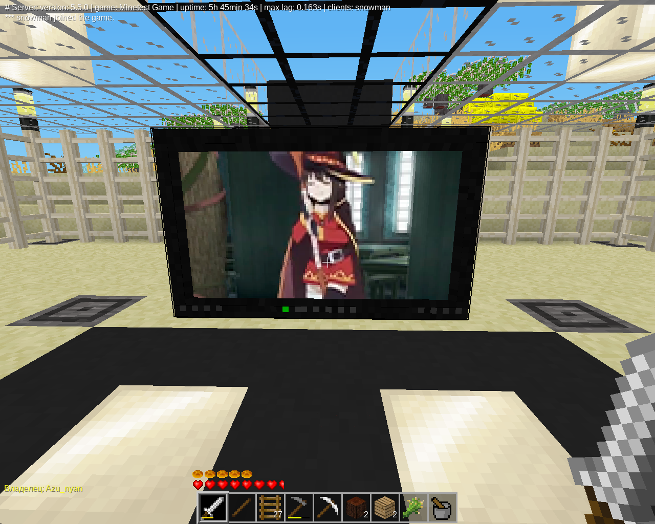 >>581711 Создал свой сервер minetest c модом Mineclone 5. Жду всех желающих. Для тех кто хочет поиграть на мобиле палю годноту. Играйте не на официальном клиенте minetest, а на Multicraft: Build and Mine. Пусть вас не смущает реклама, ее не будет в мультиплеере, зато управление станет гораздо проще и удобнее. IP = 45.93.200.202:30000
