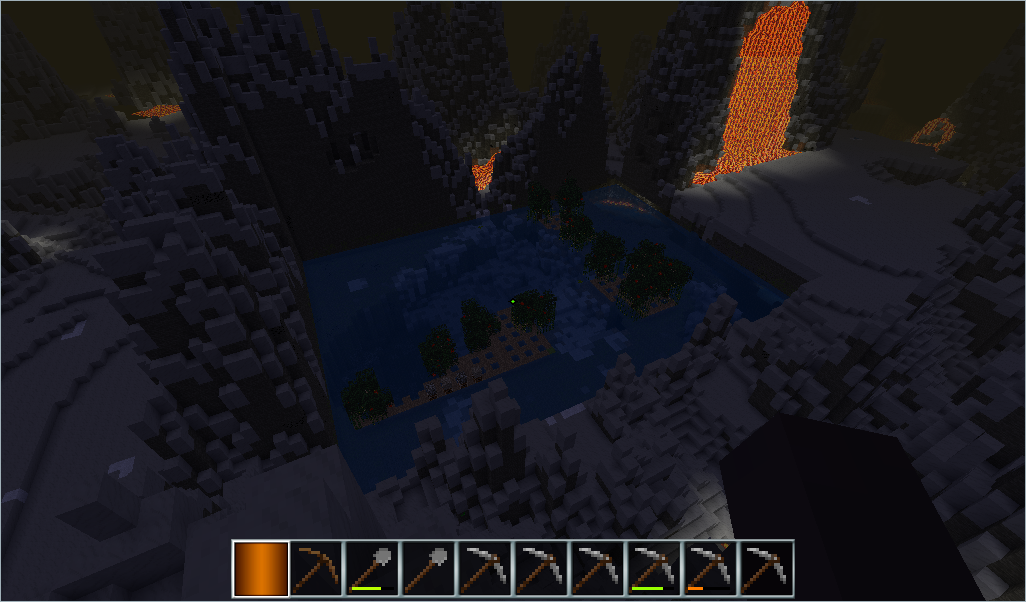 Hades Revisited - здесь внезапно залип, но вообще-то это не лава а хуява прямо скажем, так что так, прикол на один раз, хотя как камни от воды переходят один в другой понравилось. (Я кстати подобным занимался в обычном майнкрафте, когда в кастомном мире указываешь омские уровни морей и лавы и кекаешь. Самый кек был, когда сглючился мир с битыми чанками если понимаете о чем я, и там один чанк дип оушен, а соседний соответственно море лавы, вот это да.) Но постепенно мне всё начало казаться каким-то эфемерным и словно наёбывающим, может место такое попалось, но в общем я как потушил вокруг себя, так оказался как на какой-то водяной губке, где заебешься что-то сделать нормально. Ну и все равно альфа и в 2021 обещали тотально переделывать, так что отложу.
