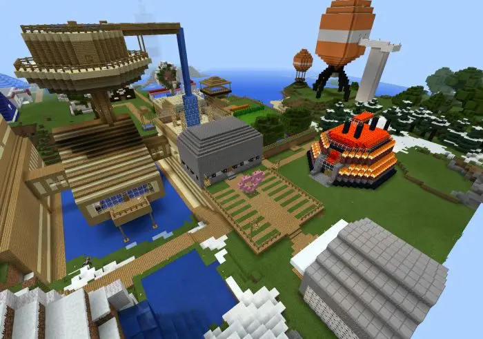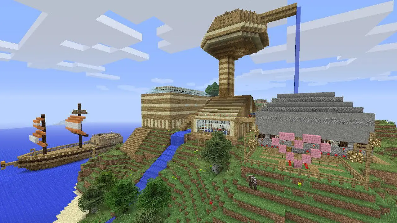 Что-то подобное помню,только не деревня,а город был.2012 год,снимался на Minecraft 1.2-1.3 с модами