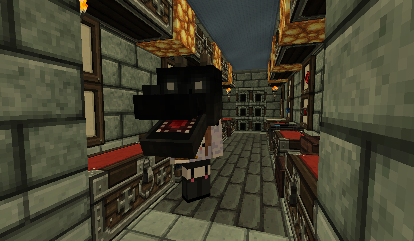 Я осторожно сбегал домой, захватил три обсидиана и рычаг - и в одной из канав прикопал свой гейт, который соорудил из этого нехитрого лута - стандартная мера предосторожности на случай если встречу хозяев локации, и пошел исследовать местность. Точно уже не помню, в каком именно порядке мне предстала база, на которую я попал. Но в память впечатался тот восторг, который у меня вызвало увиденное: большая библиотека, оружейная, забитый лутом и несколькими стаками алмазных блоков склад... всё это соединяли интересно оформленные коридоры с лавовыми фонтанами.