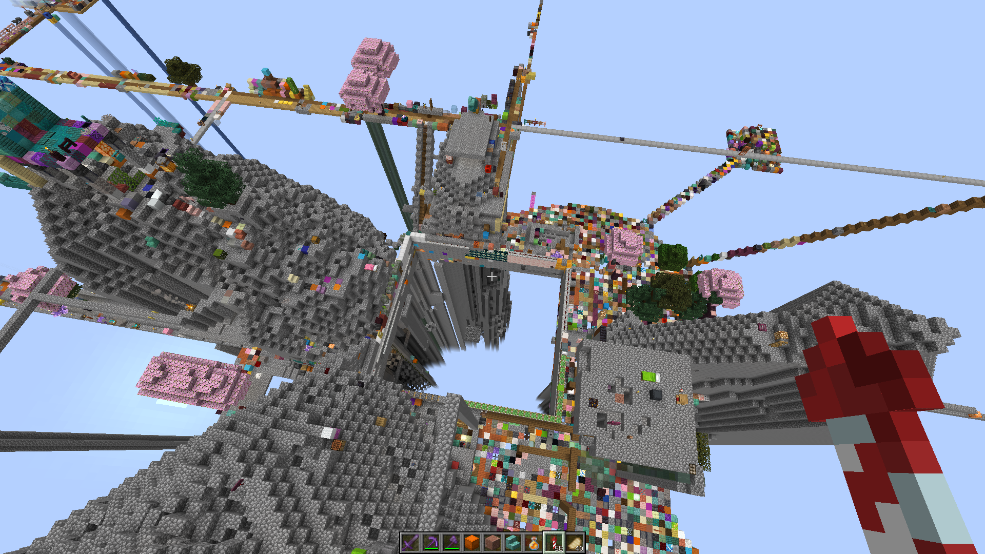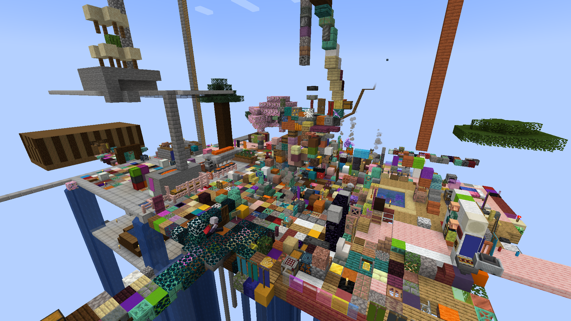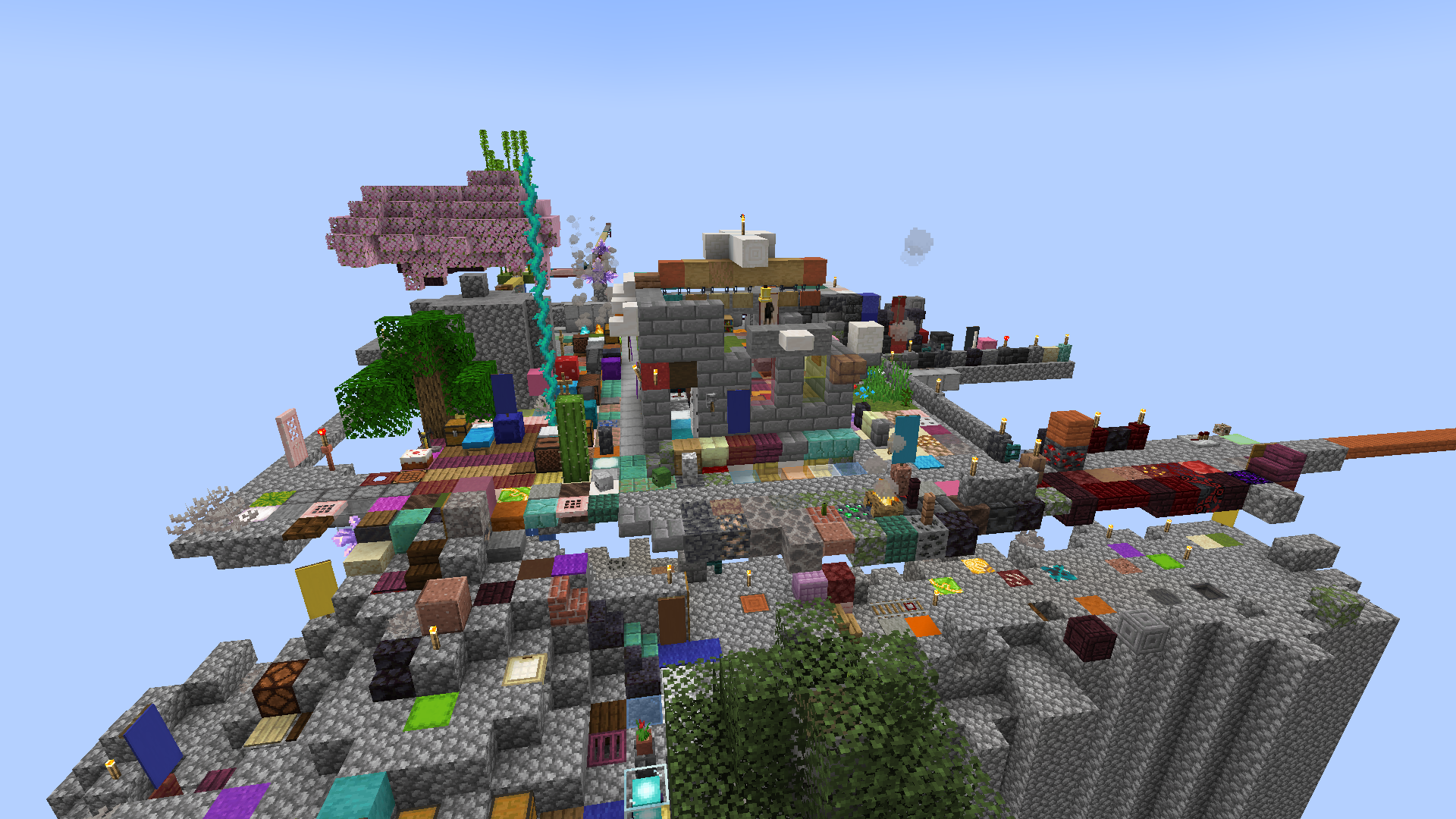 Напоминаю основные особенности рандомблока: - Мир изначально содержит только 4 блока бедрока, всё остальное создают игроки. Вайпов нет. - Раз в 20 секунд каждому игроку даётся случайный блок. Что угодно, от булыжника до спавнеров и яиц призыва. - Все игроки спавнятся в одном месте. Дальше можно играть там же, а можно улететь подальше и основать свою базу без чужих-лишних.