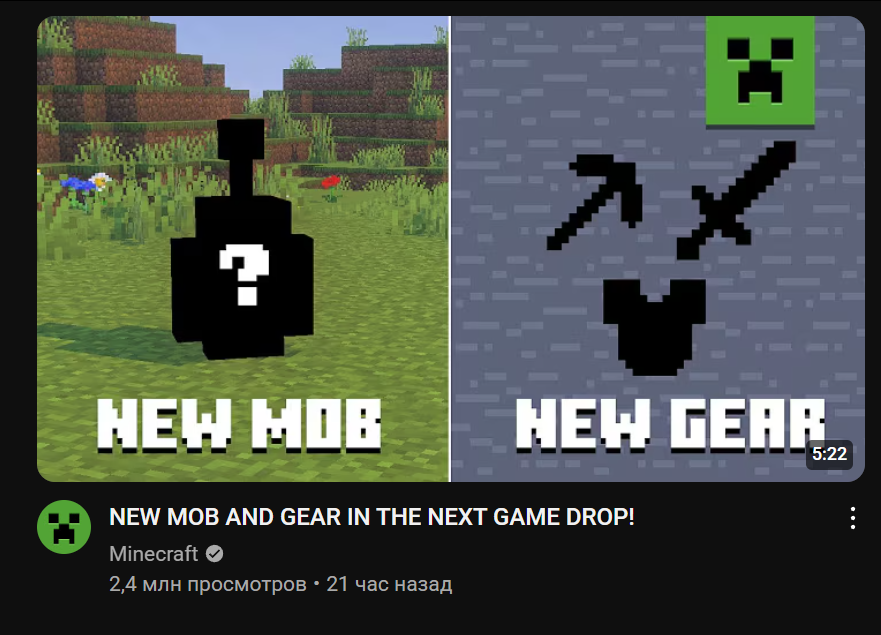 Чет майкрософт совсем забили на поддержку майна, раньше обновления как в кузни ковали, и подземные города, обновления пещер ада, деревни и марадеры, подводные обновы, в общеем дохуя чего интересного, а за последние года три че они вообще сделали, добавили лягушек и верблюдов?
