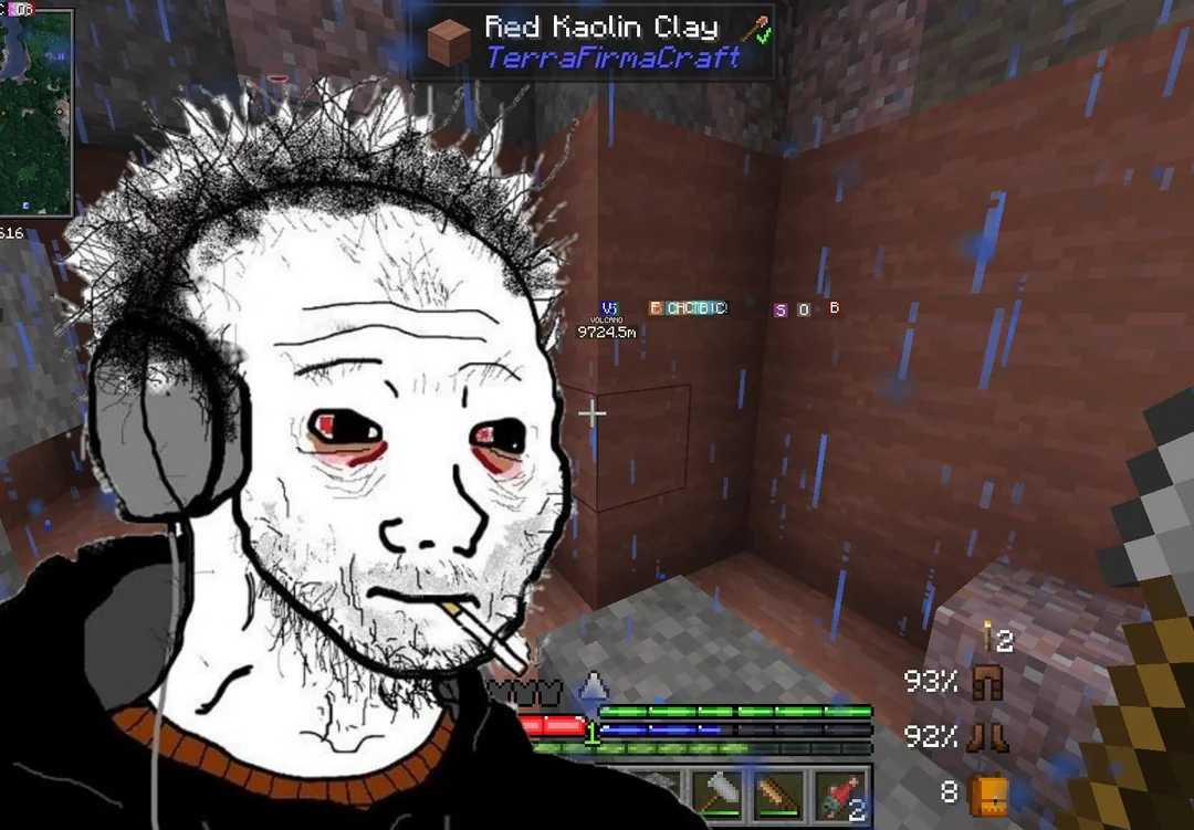 хз о чём пост. играл в https://github.com/TerraFirmaGreg-Team/Modpack-Modern версия 0.7.x в майн с модами не играл прежде, поэтому только дошёл до конца лв с постройкой ебф и бросил на некоторое время, и потом вышел апдейт нахуй 0.9.0, где вообще весь прошлый прогресс перелопатили, он стал местами комплекснее, местами легче, даже захотелось заново начать, тк меня он уже не касался почти, кроме экструдера, у которого рецепты были онли мв, может по меркам грега лв не очень далеко пройдено, но с тфк не знаю, хоть сейчас помню довольно много оттуда, но там основная проблема это поиск ресов, если каолин можно было найти просто пройдя много блоков на юг, то поиск редстоуна заключался в поиске гранита, который даже если встречался, мог не иметь нужных руд рядом. и конечно в тфк есть ковка, которая может и интересна в небольших количествах, но сильно начинает заёбывать на этапе с железом, когда надо ковать 2 раза, чтобы получить нужный слиток. сейчас там криет переделали полностью, убрав шансы и добавив разные новые блоки для автоматизации вроде молотов, штампов (аналог экструдера до грега) и всё это со 100% шансом крафта, те крафт стал выгоднее. но вот что не понял, что видимо переделали доменку, которая теперь работает от кокса или какого-то угля из незера, который аддон к тфк, те либо ИСКАТЬ и копать уголь и пихать в коксовую печь или пиздовать в новое измерение, наверное, очень жёсткое. вроде весело, но тогда я потратил 40 часов, сейчас мб быстрее будет, тк тогда долго дрочил какую-то хуету из-за чего сосал зимой.