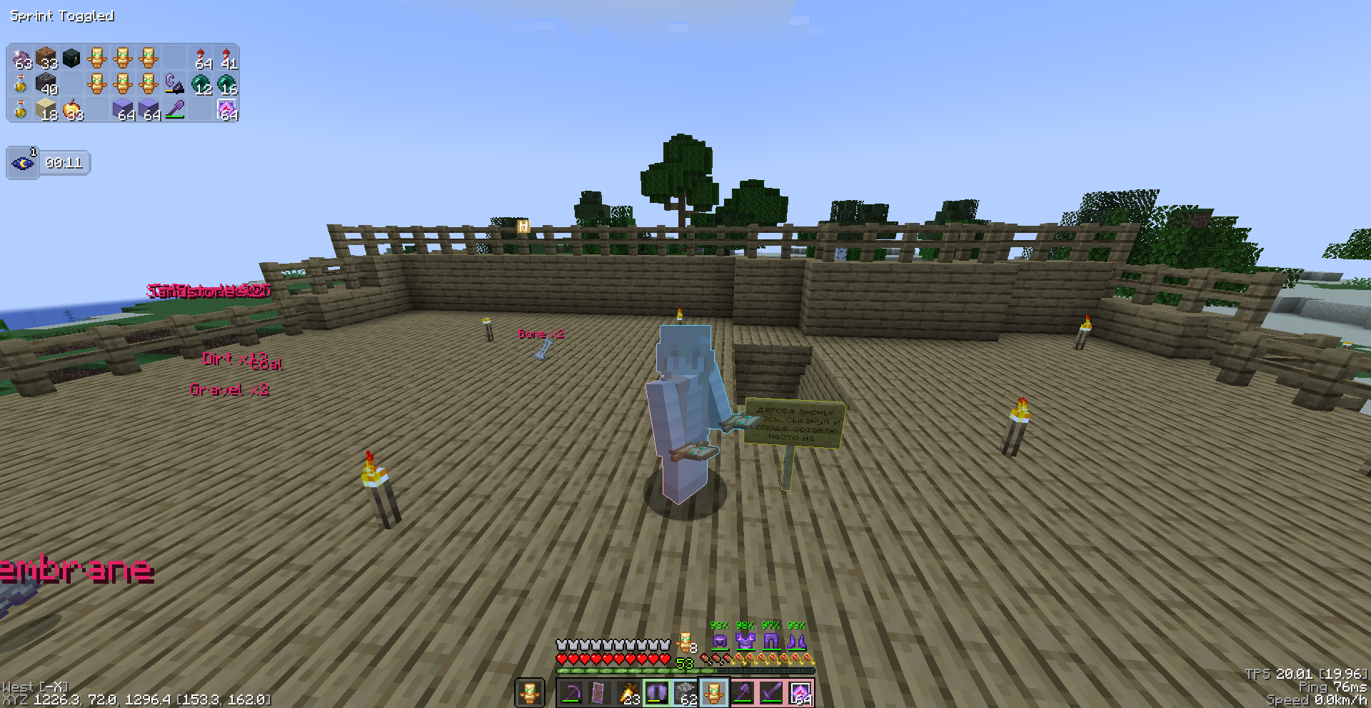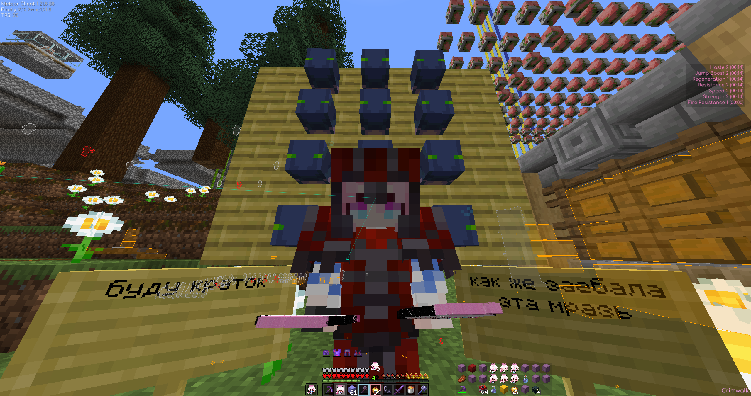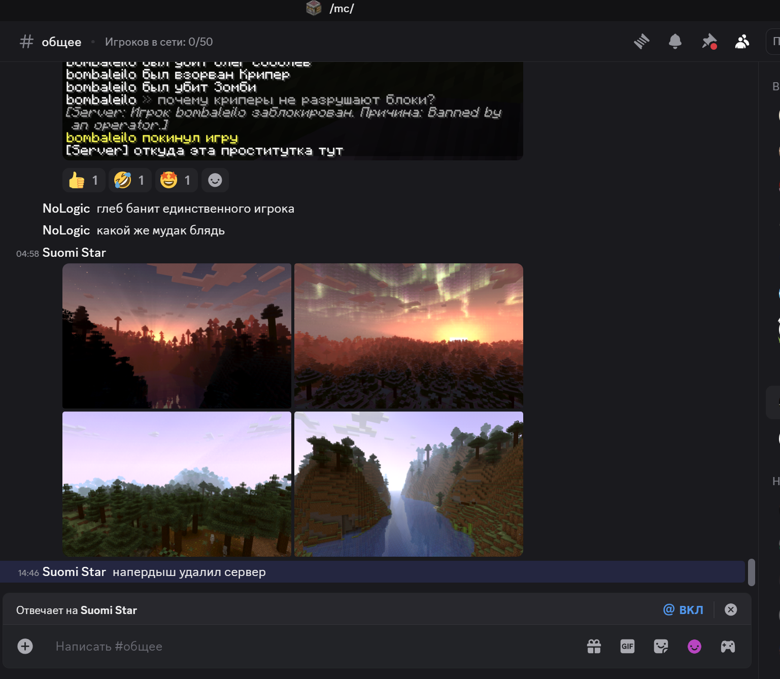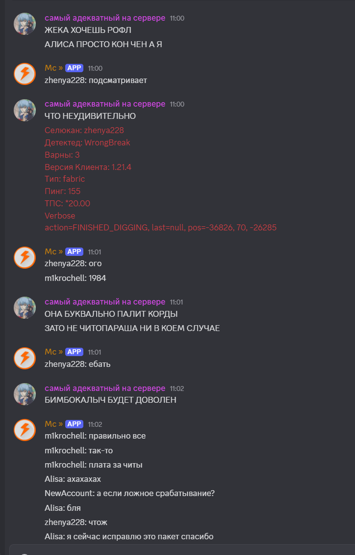 Подмена понятий на лицо, ламповость = полный хаос. Если через 5 лет ваш "ламповый" сервер - это пустой спавн с лавакастами и 3-мя оставшимися старичками, которые боятся новых игроков... Скорее всего проблема в представлении о том, как должно работать комьюнити. Даже на сервере БЕЗ приватов, жёстких правил и красивых стартовых локаций можно создать комфортное пространство, если игроки уважают друг друга. Админ гордится тем, что не контролирует хаос?) "делают что хотят" - на деле это значит "мы разрешаем быть мудаками". Настоящая свобода - это когда ты можешь снести чужую постройку, но не делаешь этого, потому что понимаешь: без этого сервер превратится в помойку, а в вашем случае ещё и в читопомойку. На скринах есть тому подтверждение - люди играют с иксреями и трекерами, а админ сознательно закрывает глаза и лишь гордится античитом, который даже базовый детект руды через блоки не ловит. Вот и всё, надеюсь мимо проходящему рандомичу мои посты послужат предупреждением.