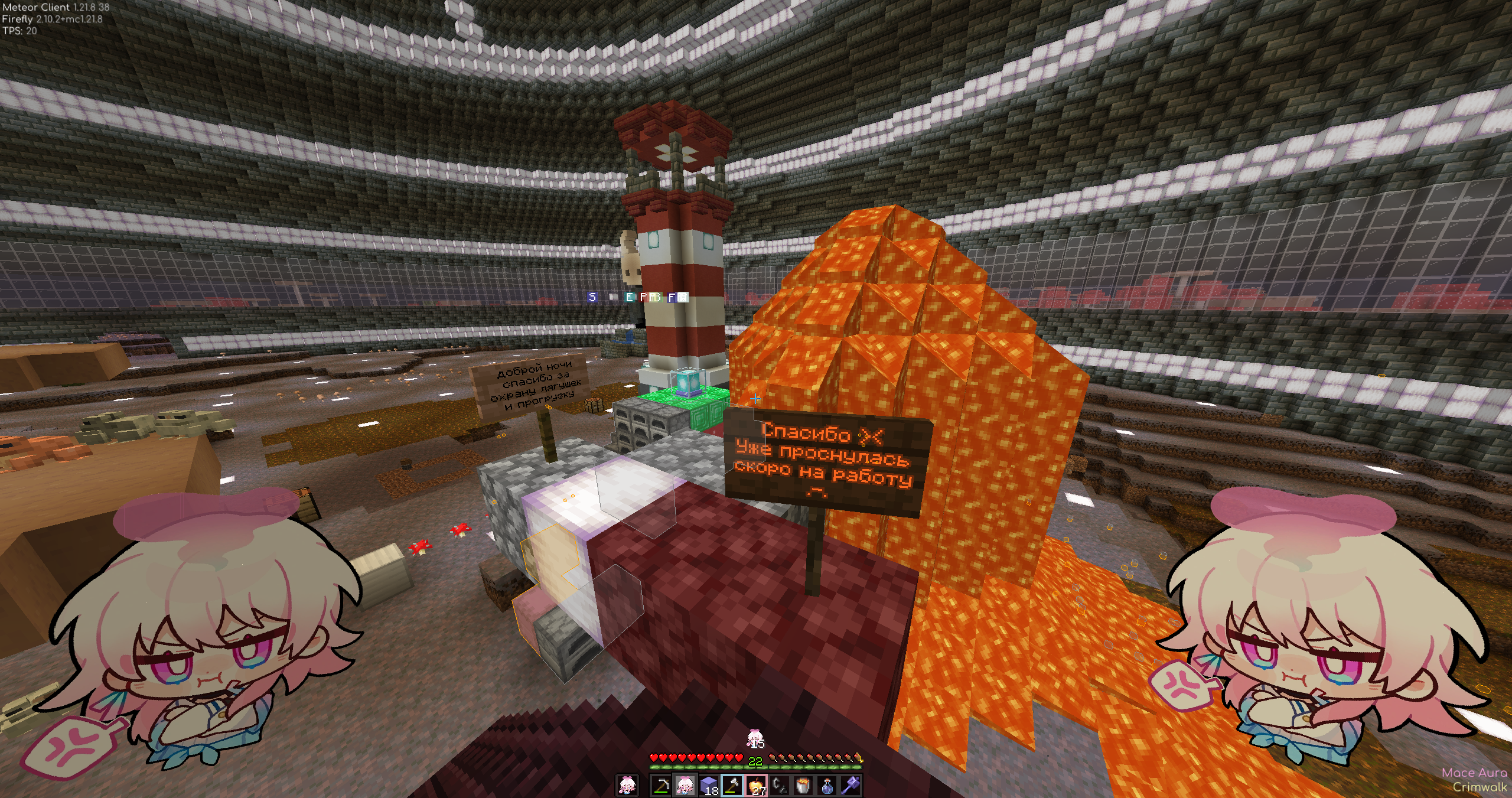 проплыть под лавакастом, залутать себе элитры и улететь строиться на дальние коорды? нет, нахуй надо. поною о лавакасте на спавне, пиздец, откуда вы берётесь такие. скрины - предыдущий спавн и незер/энд, вам бы спасибо за лайтовый гейминг сказать