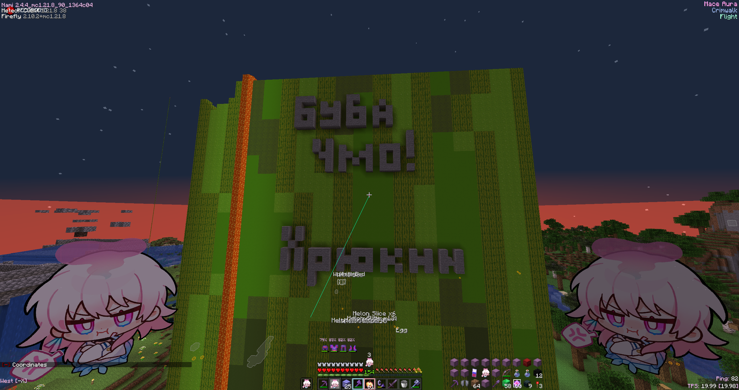 - Включён дюп TNT и ковров, разрешены эксплойты с поршнями (allow-permanent-block-break-exploits: true) - Разрешена команда /hat - Исправлен баг с чатом, из-за которого ссылки не передавались в Discord - Исправлен баг с Piston Chat (скрытие сообщений) - Обновлено /menu: теперь можно отключать уведомления о способностях, заряд умений на ПКМ, общий чат - При наведении на никнейм игрока в чате, видим его мир, хп и пинг - Исправлен баг с HeadDrop (головы снова падают)