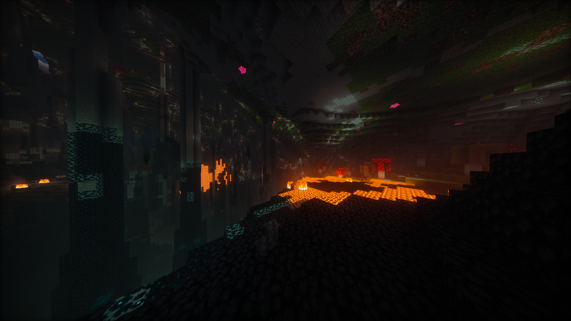 Про генерацию мира. Terralith. Terratonic. BetterStructures. Очень много новых биомов и структур для исследования. Куча всяких датапаков, которые улучшают ванильные структуры. Изменена генерация незера и энда. От ванильной генерации мало что осталось.