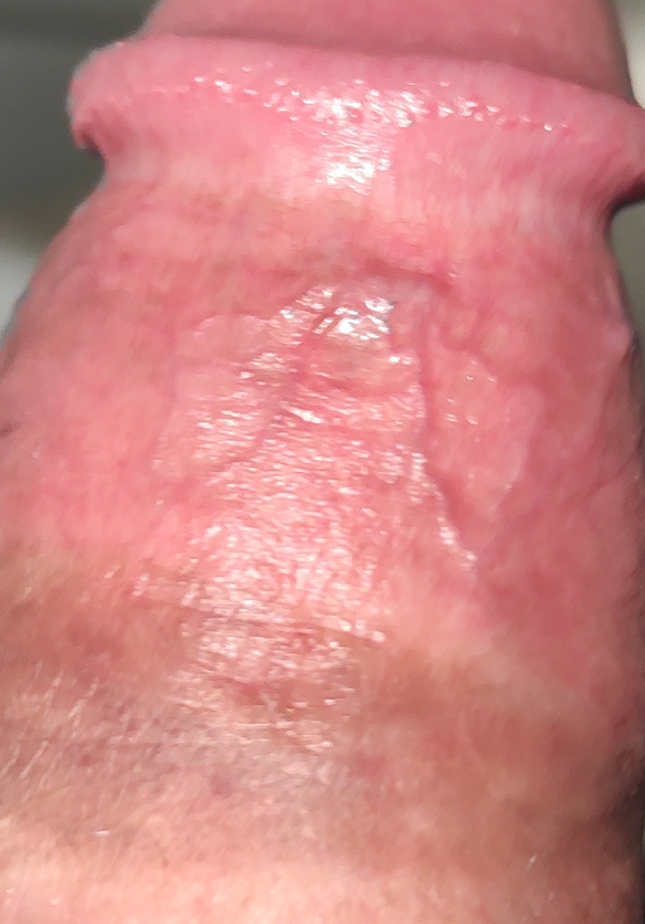 Здрасьте мужики, я в форуме не шарю, поэтому пишу про свою проблему здесь. Мне 29 лет, живу с девушкой одной более 5 лет, все было хорошо, в одним момент после мастурбации стало дико жечь там где никогда не жгло, сходил в венеролугу, нечего не обнаружили вроде как прошло, после этого сменил лубрикант стало все норм но сейчас уже появилось красное пятно на члене которое зудило и потом покрывалось коркой , потом вроде бы проходило но еле заметное покраснение осталось (заливал Хлоргексидином, быстро проходило), а сейчас новая проблема на самой головке появилось резкое красное пятно, фото ниже , не решиться но когда головка открыта, были заметны капельки по типу росы , ходил к урологу сказал что ничего страшного, но я все равно сомневаюсь, раньше такого не было, помогите пж