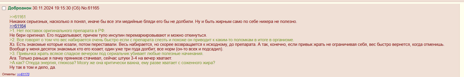 >>1617896 Я другой толстый Антон. Я не хочу это дело принимать, чтоб худеть, слишком сильные полочки. Лучше умереть в 40-45 жирным, чем от побочек Оземпика. Пытаюсь кататься на велосипеде и самокате, не электро и то, и то.
