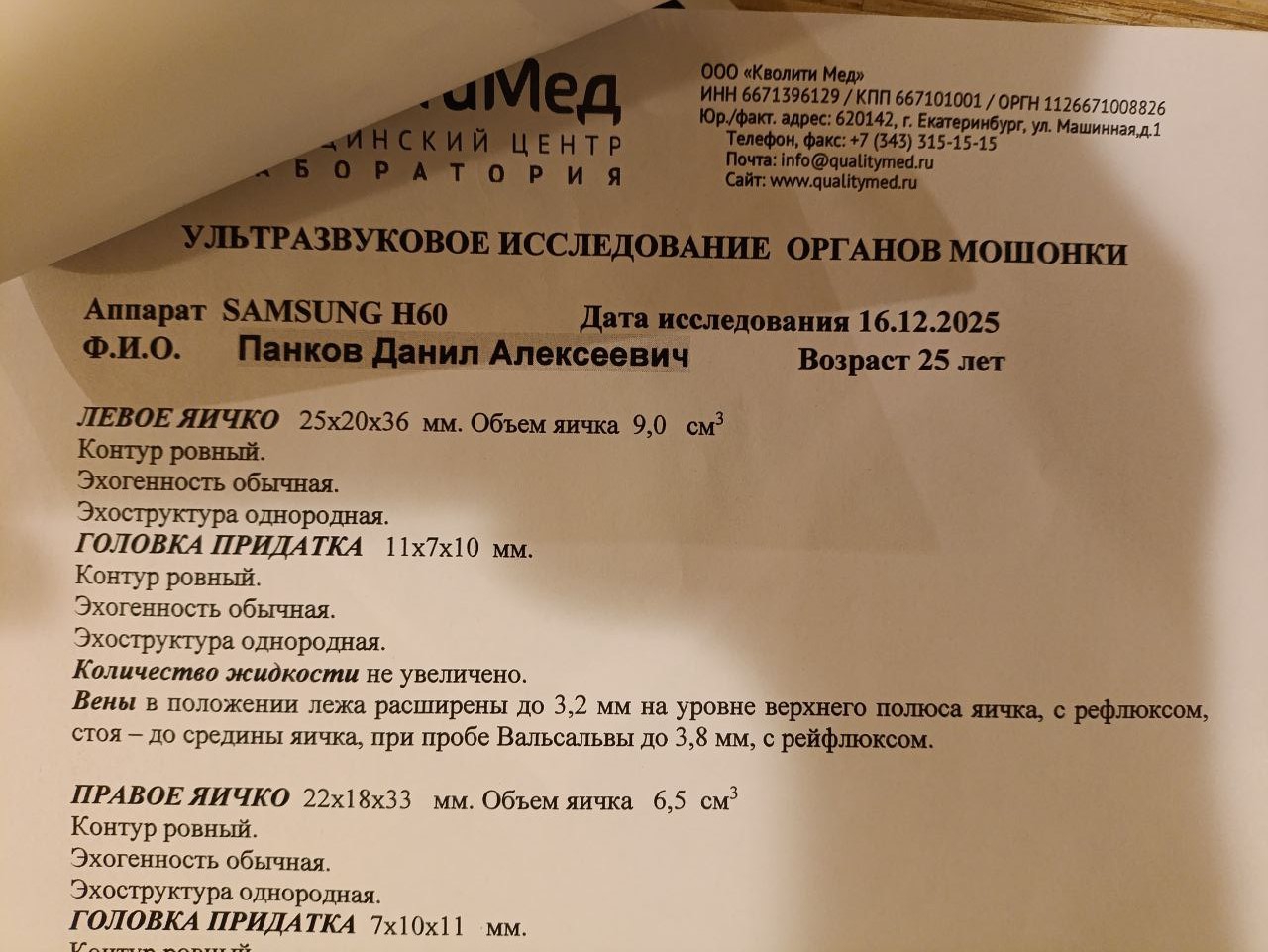 После самого допплера я прямо спросил если ли утечка он сказал, что нет. Возможно они при отсутствии утечки не указывают цифры.... Предложили пройти лечении с помощью аппарата с помпой.