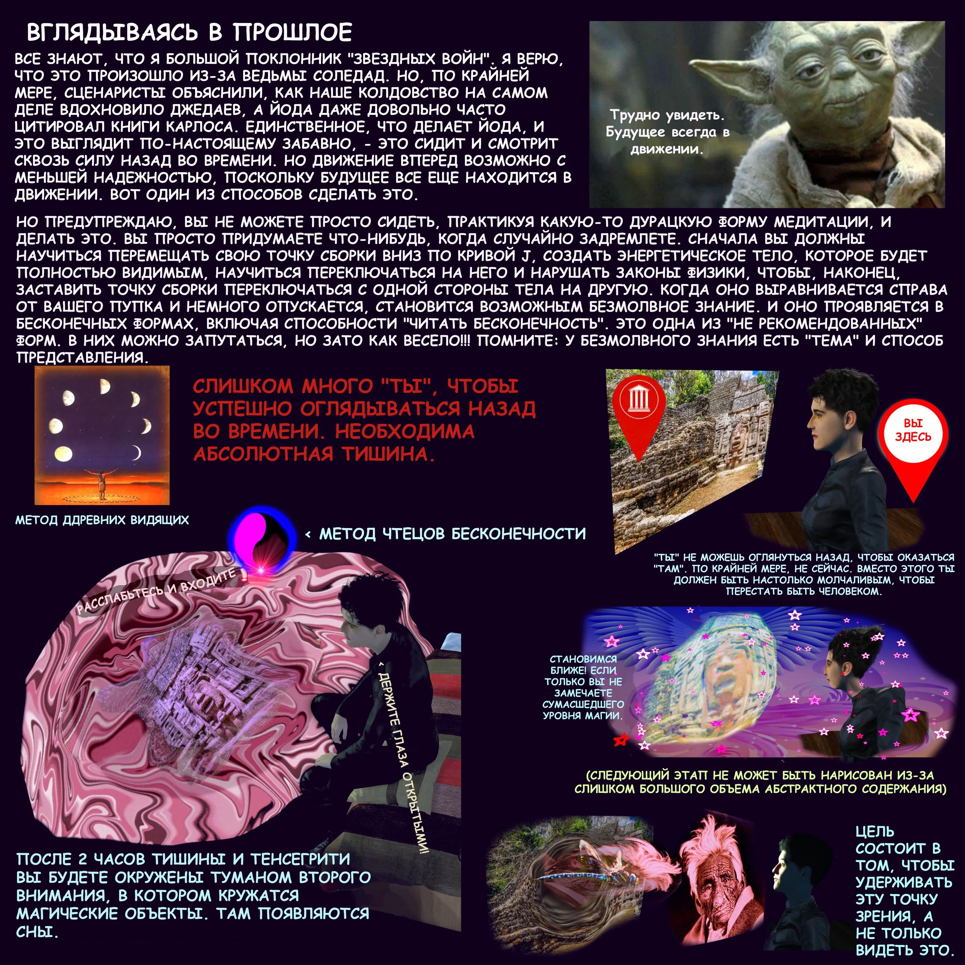 >>666717 Нет, этот клоун ничего подобного сделать не в состоянии. Делали люди, которые вживую у Карлоса Кастанеды обучались в 90х, это по материалам его семинаров, приватных.