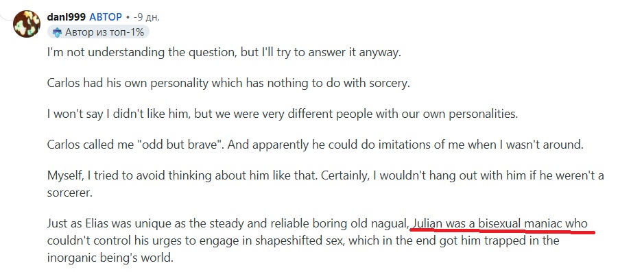 >Я имею в виду r/castaneda Значит, я плохо смотрел. мб я просто ввёл в поиск что-то про Кастанеду, а там попалось что-то с реддита. Я знаю реддит больше как сообщество айтишников