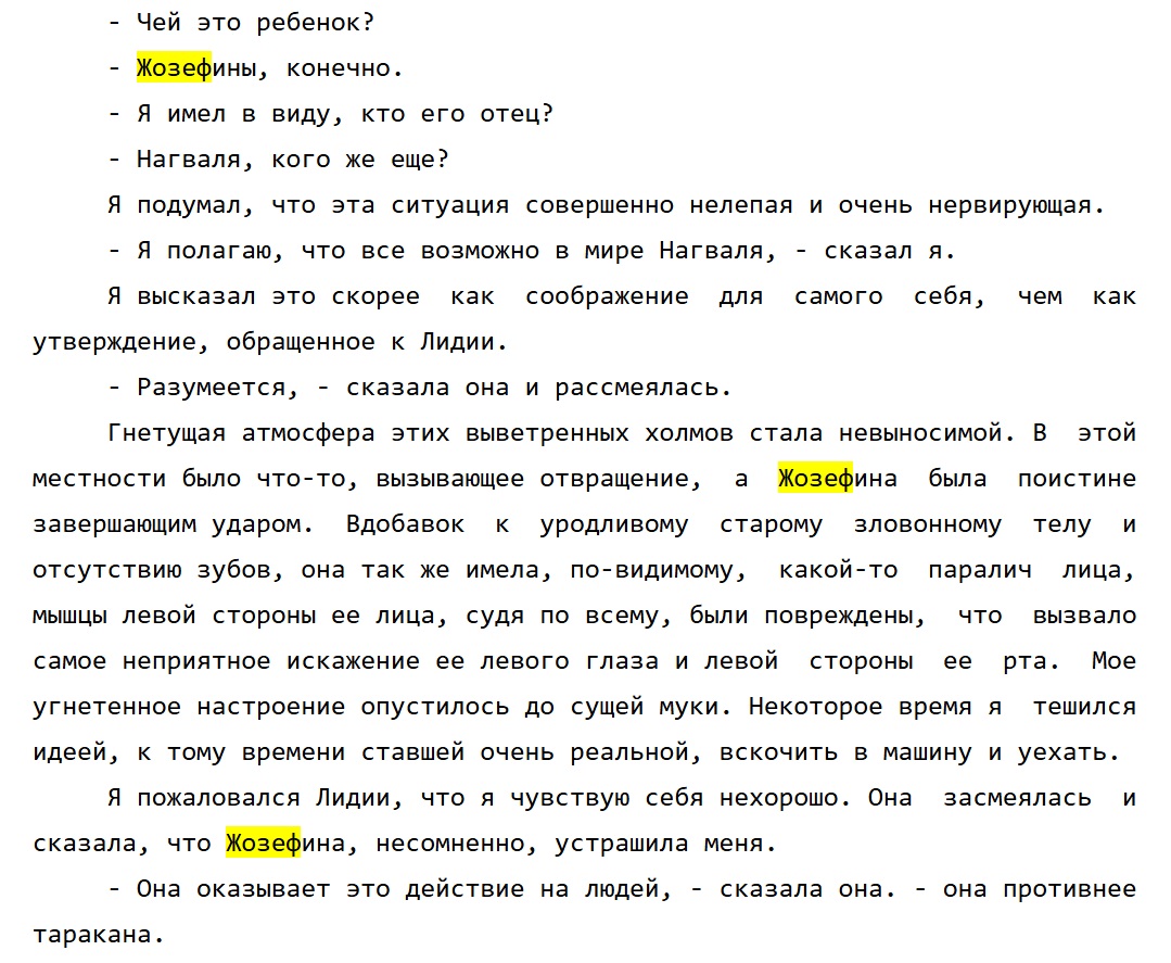 >>685226 Они и по стенам бегать практиковали. То, о чем там говорится не какие-то обычные бытовые вещи, которые нагвалистская тусовка сразу равняет к своему притворству, как то сталкинг = фигней маяться, необычно себя вести, ролеплеить, а то и просто болтать языком. Эмилито говорит Тайше в доме магов - я научу тебя сталкингу с дублем. Причем успешно учит, и за все время обучения Тайша не контактирует ни с какими людьми, сидит на дереве и делает практики. Жозефина и остальные уже могли работать с дублем. Даже бестолковый Паблито попытался ухватить Карлоса рукой своего дубля. И в книге прямо пояснено, что это его сталкинг, так же как давление глазами на грудь Бениньо. Сталкинг это деятельность во втором внимании, которое Жозефина уже могла задействовать по желанию, благодаря тому что это было отработано месяцами практик за годы, проведенные ими с нагвалем. Дубль Жозефины выполнял некую деятельность для нее на постоянке, манипулируя восприятием людей, благодаря которой она могла свободно двигаться, без того чтобы к ней постоянно приставали.