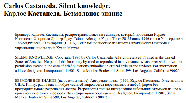 «Ключом к шаманизму является изменение нашей идеи мира. Остановка внутреннего диалога — единственный путь к этому. Всё остальное — просто разговоры. Всё, что бы вы ни сделали, за исключением остановки внутреннего диалога, ничего не сможет изменить ни в вас самих, ни в вашей идее мира.»