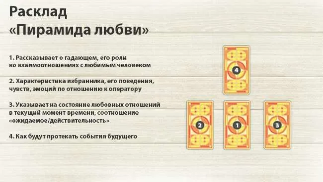 Делала расклад на отношения с парнем, вместе 2 года, можете дать пояснения. Делала пирамиду любви. Пикрил 1. 6 мечей 2. Король пентаклей 3. 10 шезлов 4. 4 император