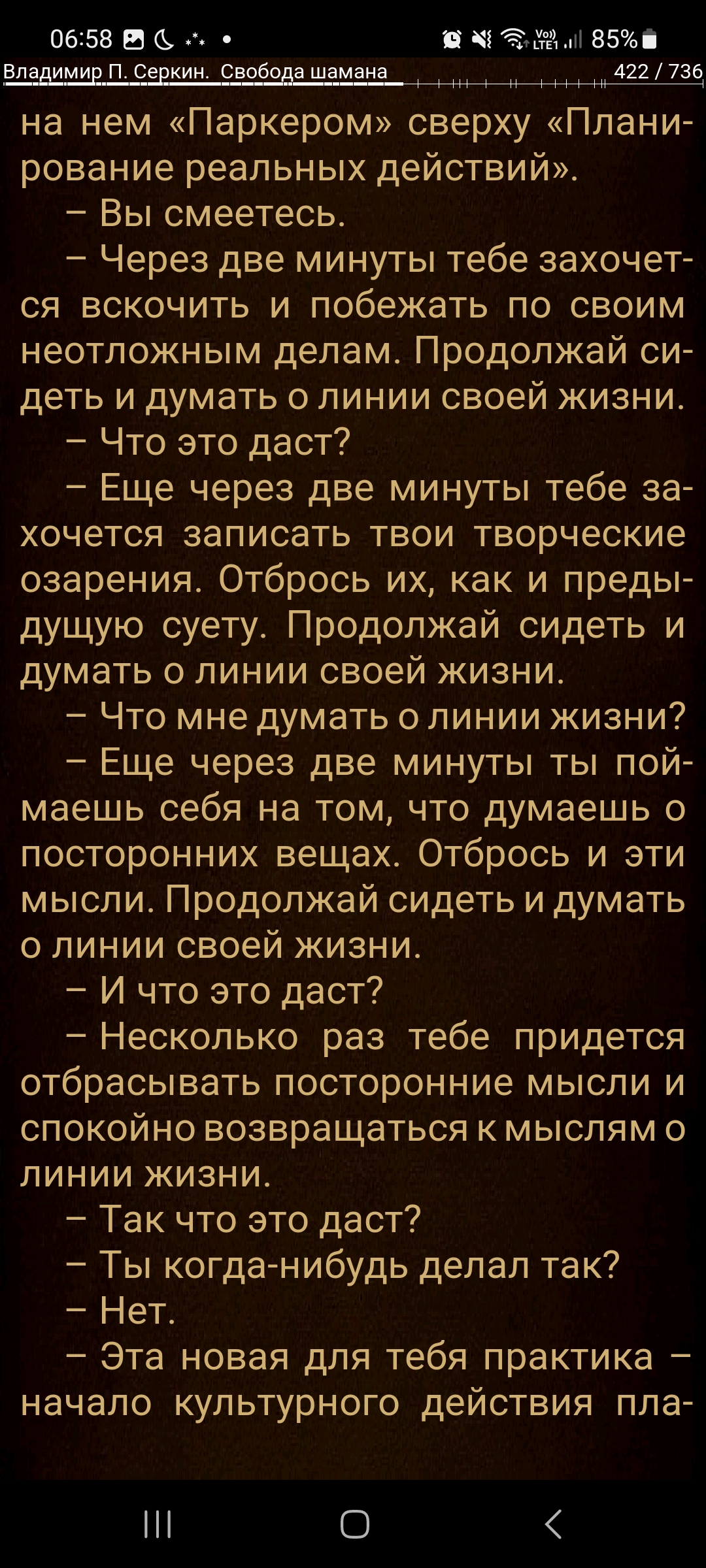Что самое смешное — я лично никак не доберусь до той части из методы, которая про остановку внутреннего диалога. Точнее, пробую перед сном, но просто улетаю мыслями или засыпаю лол.