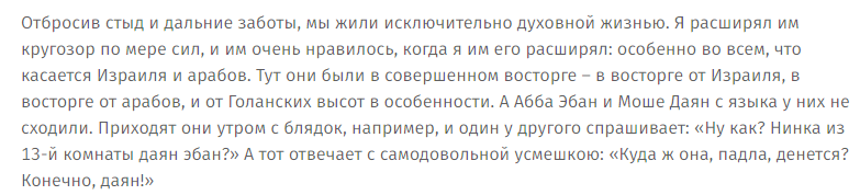 >>693411 >Позавчера зашел в Википедию чтобы прочесть биографию Менахема Бегина, увидел в статье фото, на котором Бегин запечатлен вместе с Моше Даяном. Параллельно в тот же день читал "Москва-Петушки" Венедикта Ерофеева, где в тексте несколько раз упоминается Моше Даян в довольно похабном контексте. Вчера в /b/ увидел тред посвященный онанизму, в нем топикстартер задавал анонам вопрос, как они дрочат и бампал свой тред фотографией Моше Даяна. На мой вопрос, почему он запостил именно фото Моше Даяна, я получил ответ что он на него дрочит.