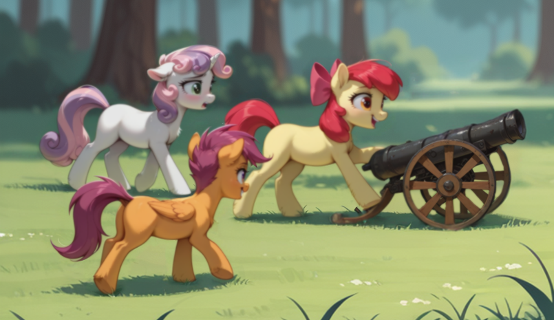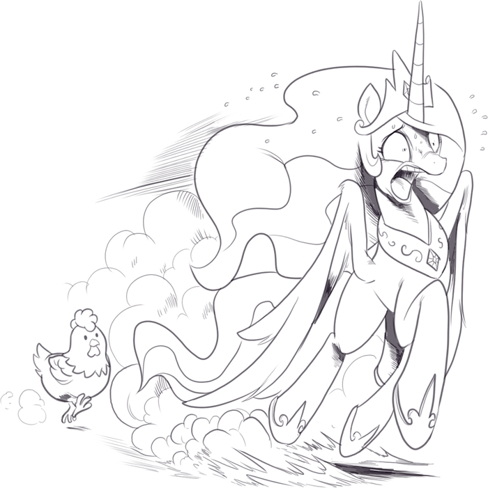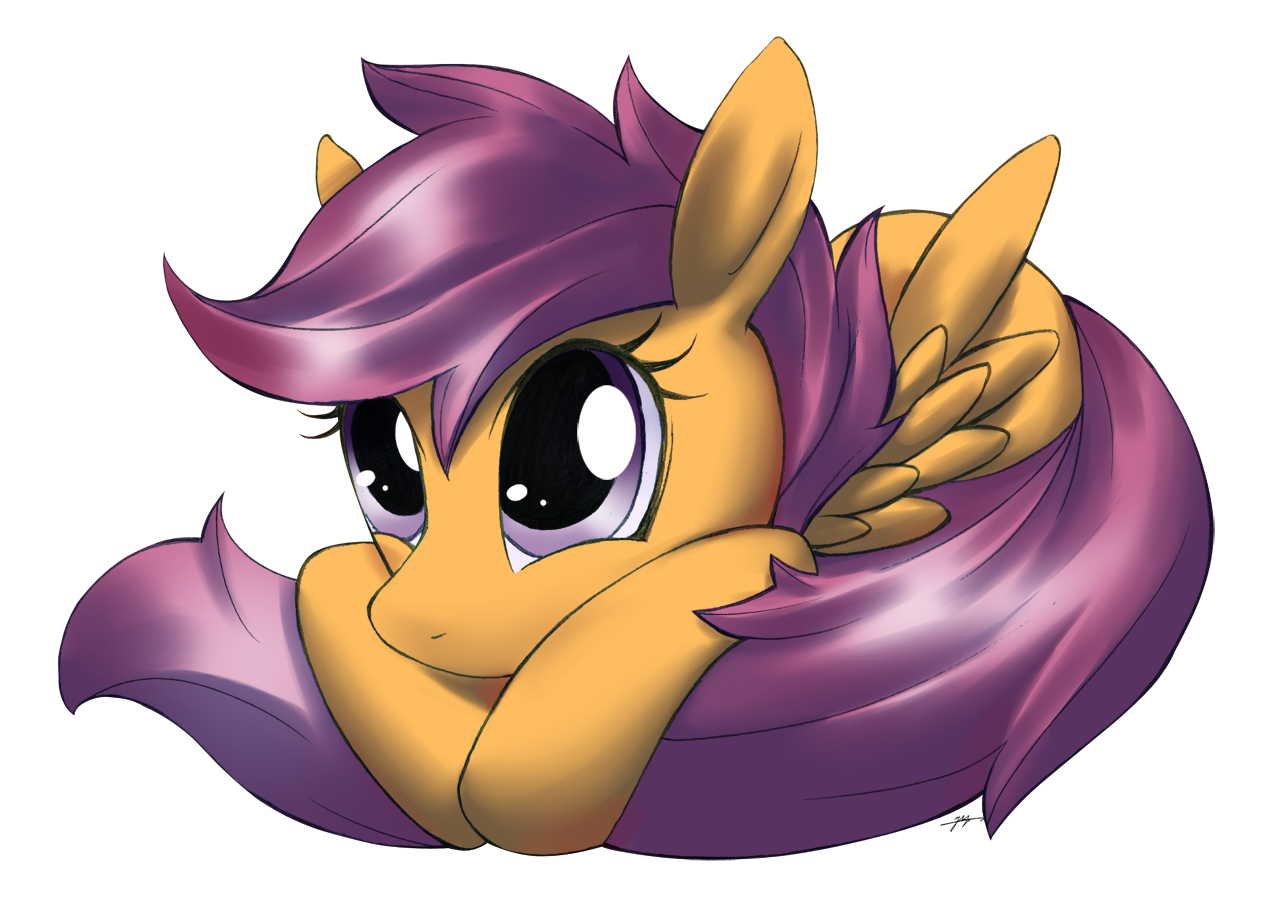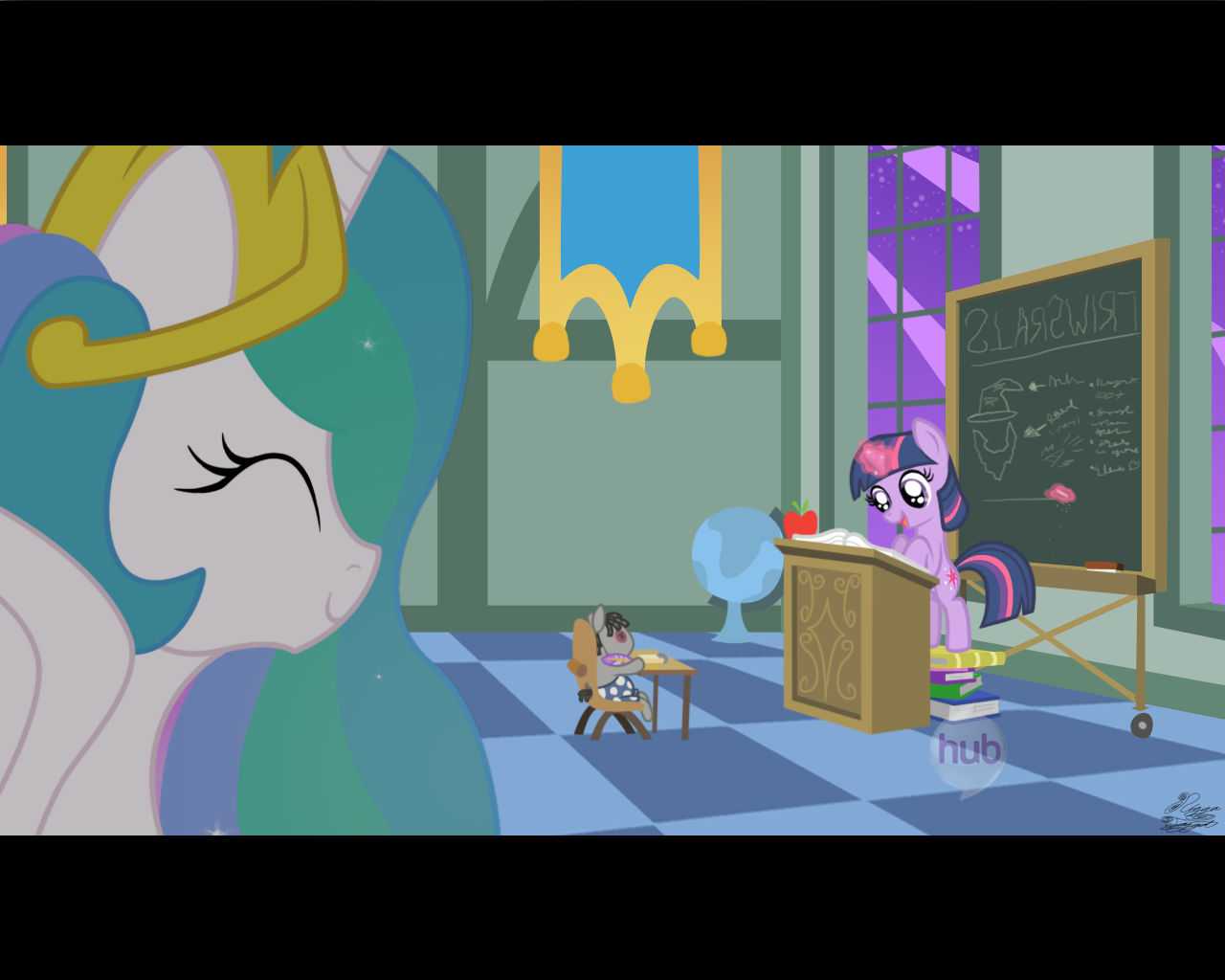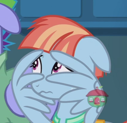 — Скуталу, встань! Принцесса же! — тихо шикнула Рейнбоу Дэш, слегка потянув её за крыло. Скуталу нехотя поднялась.