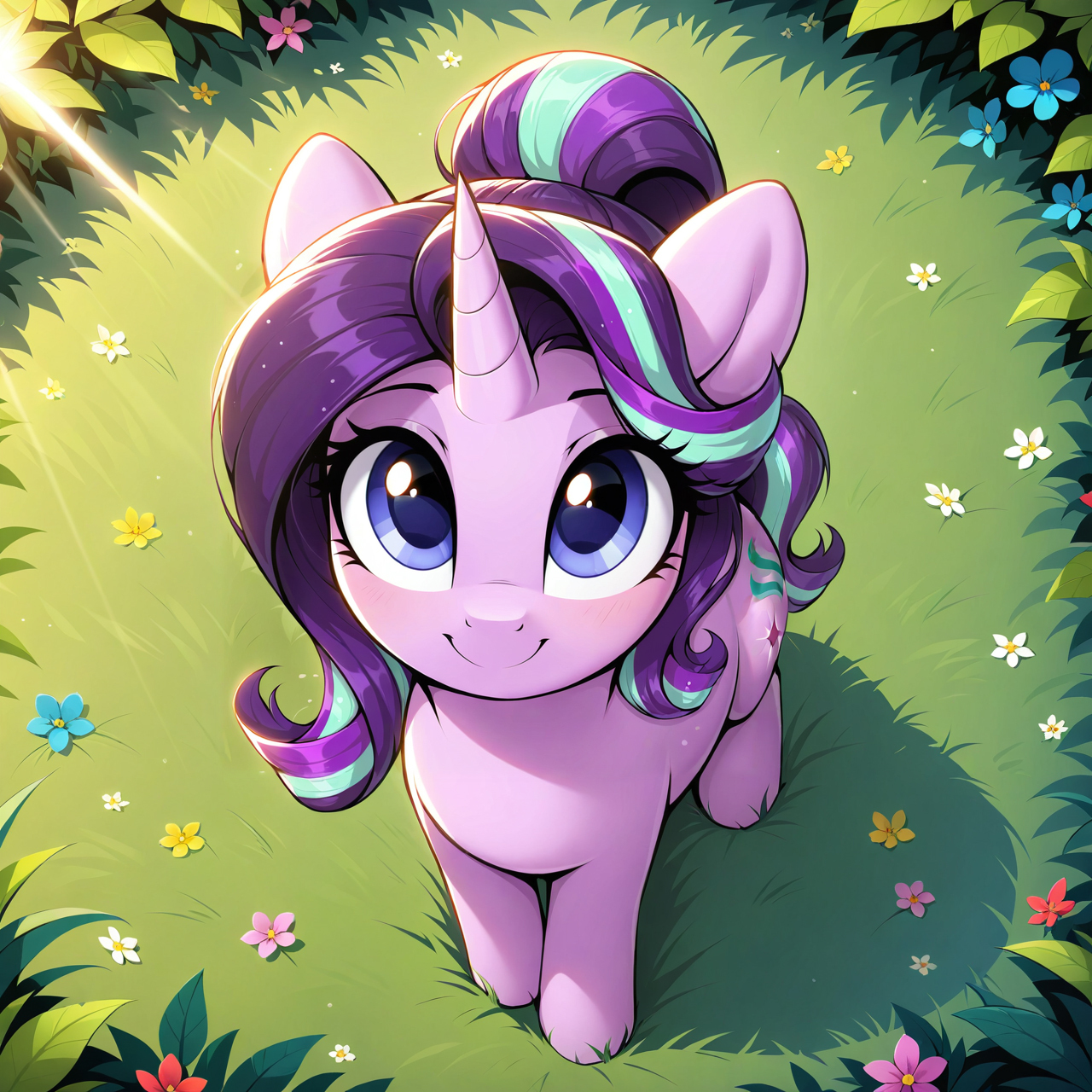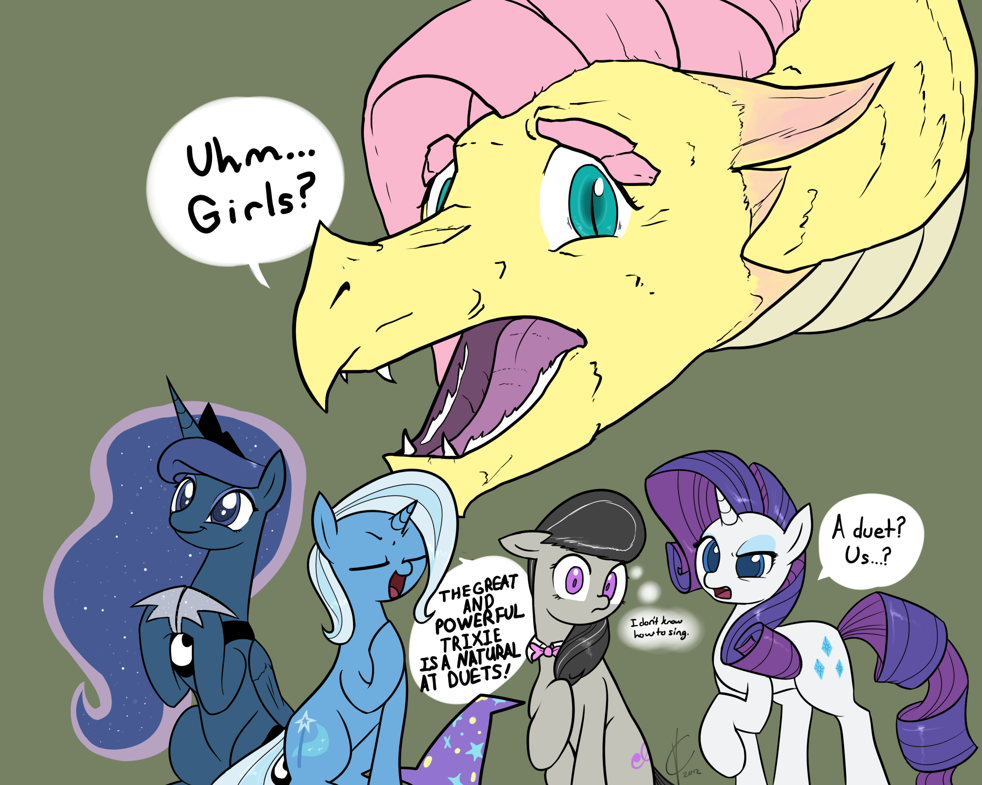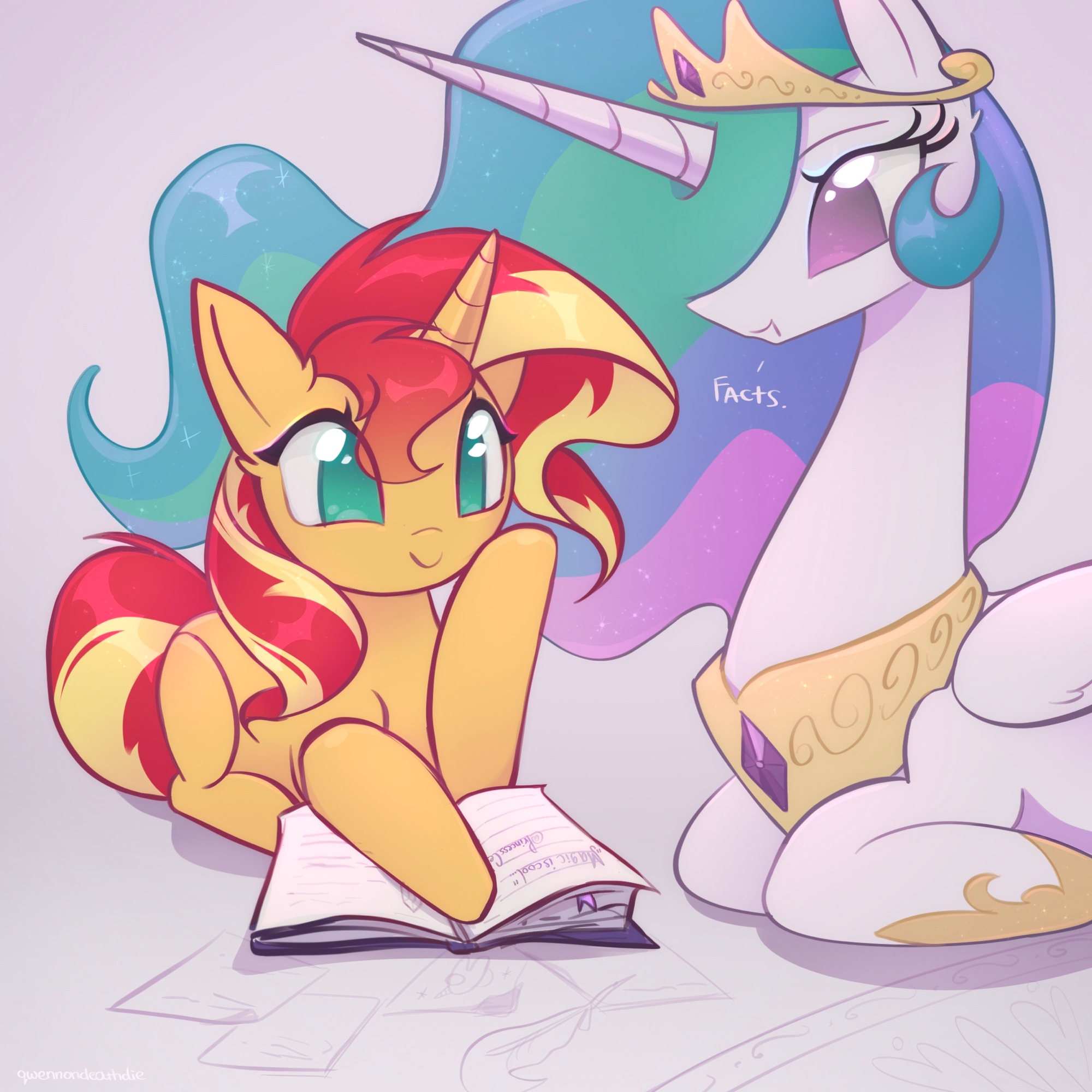 — Скуталу, встань! Принцесса же! — тихо шикнула Рейнбоу Дэш, слегка потянув её за крыло. Скуталу нехотя поднялась.