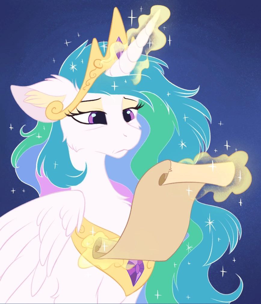 — Дорогие пони. Дорогие обитатели Эквестрии. Заканчивается тысяча ... год Эры Гармонии. Год был нелёгким для всех нас. Магические сдвиги, провалы урожая, нестабильность потоков — всё это затронуло почти каждого из вас. Я могла бы сказать, что грядущий год будет лучше. Что он принесёт стабильность, восстановление, рост. Но я не стану обманывать ни вас, ни себя…