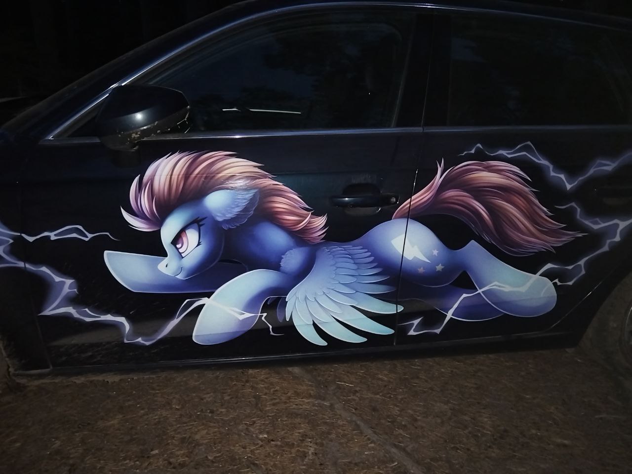 "Спустя минуту осторожного спуска вы наткнулись на дверь, а также охранявшего её стражника. Это был не фестрал - земнопони, довольно массивный и жилистый, смотрел сквозь вас, на лестницу, думая о чем-то своём. В метре от него, в небольшой выбоине, горела свечка, а слева тянулся сигнальный трос, уходивший в отверстие в стене. Осмотрев дверь, вы убедились, что никаких хитрых магических особенностей у неё нет - просто дверь, добротная, окованная, с замочной скважиной."