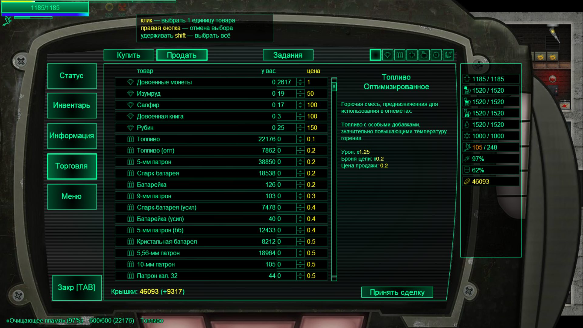 Единственное, что выбивается, это то что пет — АБСОЛЮТНАЯ ИМБА, времени конечно тратится больше, но то что он без затрат ресурсов может вырезать всякую назойливую мелочь и даже не совсем мелочь или танковать/отвлекать дпсных врагов это ну я не знаю, игра гораздо легче становится. А у меня привычка использовать то, что мне игры в принципе позволяют, поэтому я с кнопкой U уже сроднился. В общем, как-то внезапно так оказалось, что с деньгами у меня ситуация не хуже, а то и лучше чем была на обычном харде. Наверное, потому что осознал все хитрости экономики, подкачал торговлю и после каждого обновления товаров скупаю все виды лечебных бутылок и наборов вплоть до саквояжей, несмотря на то что я ими пока пользоваться не умею. Потому что лечить травмы зельями гораздо дешевле. И с оружием внезапно проблем нет, хотя игра пиздец как ограничивает боезапас, но выливается это не в то что патроны кончаются, а в то что ко второй половине локации ты чуть ли не сразу уже в перегрузе. Зато куда приятнее этот лут на базу сгружать, потирая копыты. Интересная игра, чуть ли не каждый день данжики чищу.