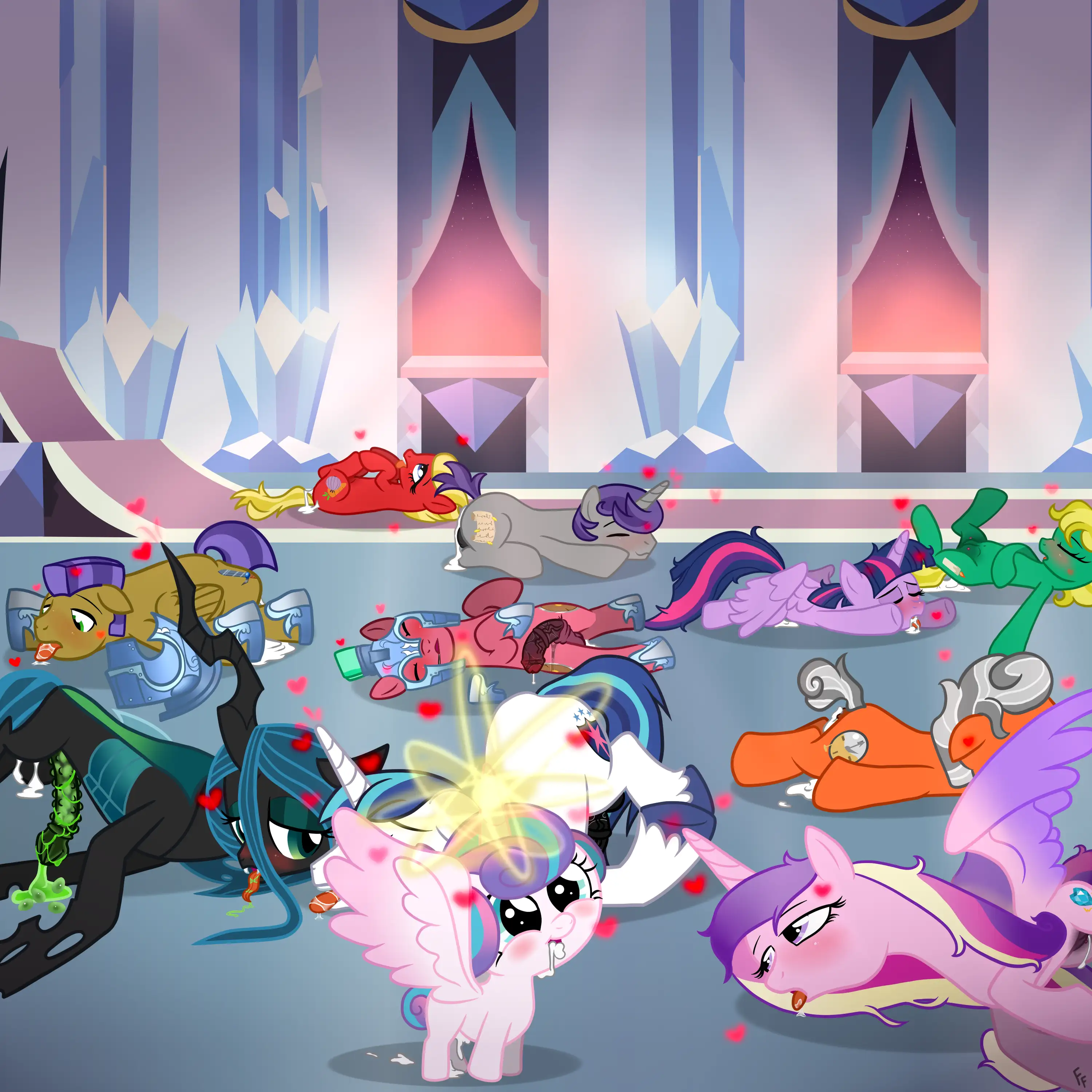 Если злая форма Луны это Найтмэр, воплощение кошмара, злая форма Селестии - суть испепеляющее пламя, то злая форма Кейденс должна быть воплощением неудержимой похоти.