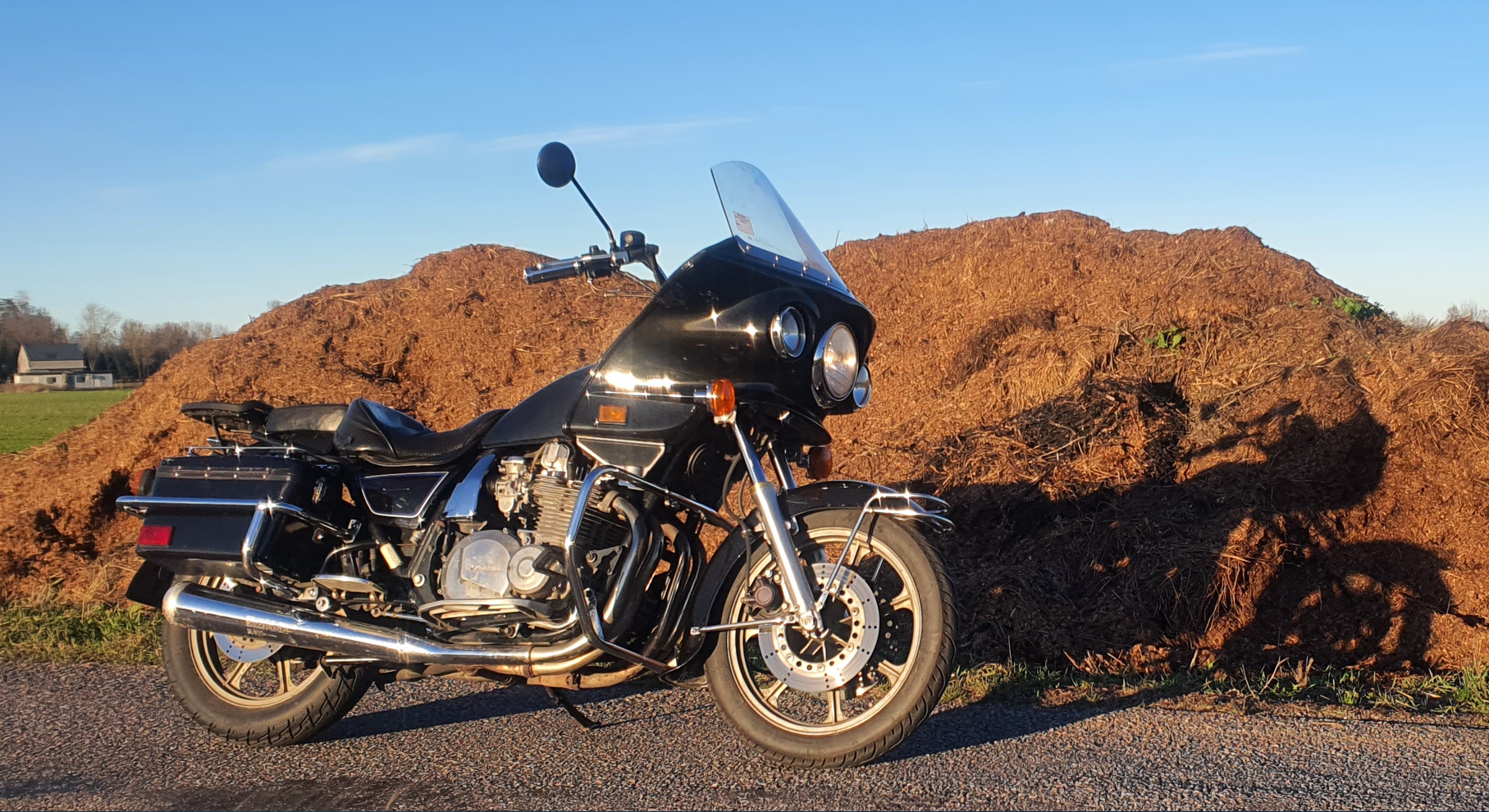 Как приятно всё-таки, что ехал на мотоцикле! Из-за ремонта дорог встретил многокилометровую пробку, в которой, по-моему, уже рождалось следующее поколение застрявших в ней. Естественно, проехал её даже ни разу не останавливаясь, под завистливые взгляды водителей.