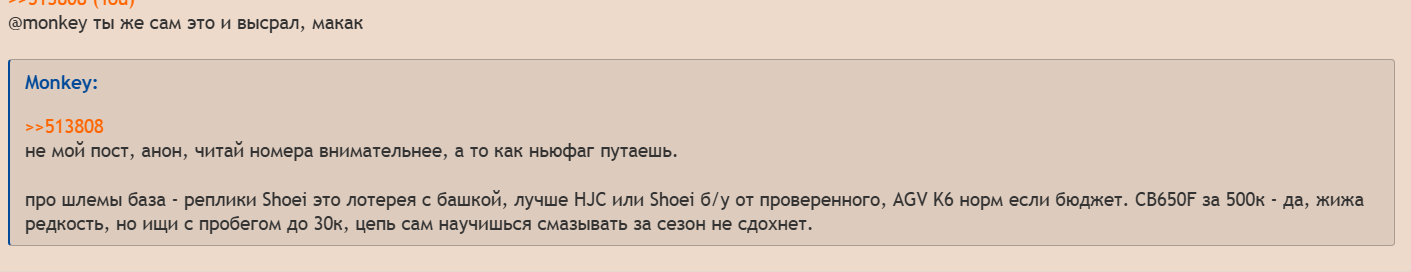 В общем: Работа и дом далековато друг от друга находятся и всегда обычно ездил на машине. Потом начались эти самые события в мире и выросли пробки. Машина отпала. Ах да, я работал тогда 5/2 Стал ходить пешком. Потеть как тварь летом и страдать зимой. Все проклинаешь. Захотел мотоцикл. Пошел учиться. Пока учился меня подбадривали коллеги-петровичи с работы, у кого был мот давали советы. Но у самих петровичей сейчас мота нет мы семейные, он нам не нуж0н Родные же крутили пальцем у виска, а одна из бабушек как обычно начала свой скулеж как она любит, если ей что-то не нравится на кого ты нас покинешь Но это не важно. Обучение понравилось. Вроде всё понятно. Но: - расстроило что в снег и холода начал учится в конце марта занятия не останавливаются и замерзал как тварь - в ливневые дожди тоже - промокал до нитки, не мог согреться и сильно страдал тем, что от холода запарывал упражнения. - в жару, в экипе который сразу купил потел как свин. - на мокром асфальте упал и повредил ногу. Колено не сгибалось месяц почти и пару недель адски болело. Но благодаря экипу ничего не сломал. И в конце-концов, выходя на финальные тесты в автошколе, я тесты сдал с первого раза, а тест-вождение не сдал с первого, второго, а на третий раз проехал вроде хорошо, но инструктор не принял. Поставил как бы заочно, типа в гаи тебя выебут за это, а тут я прощаю, бери ещё 10 занятий и будет хорошо На этом попрощался с ним, т.к были дела. Проходит месяц, я купил новую тачку и радосно хрюкаю. А вот с мотоциклами беда. По факту я слил 40к на обучение + доп.занятия. Категории нет т.к надо идти в гаи, а перед этим желательно сходить на доп. занятия хотя бы 5 раз - каждое занятие 2500р. Что делать я хз. Вырисовываются такие факторы: 1. на сегодняшний день график работы изменился, теперь я 2/2 + норму сделал и свободен. Машина теперь приоритет. Так как утром пробок нет и днём их тоже нет. Мотик для пробок теперь не нужен. 2. доп.обучение дорого 3. экзамен очень трудный + инстуктор сказал что если что, можно и за деньги, но мол дорого... 4. Нормальные мотоциклы стоят от 900к и выше. Те на которых я учился и те, которые хотел, чтобы достичь 120км (хотя бы) взорвутся ещё на этапе разгона я хотел bajaj pulsar 180. Поэтому по факту имеем то, что хороший мот = цена новой машины. Че делать аноны? Доучится или раз уж я ленивый такой, забить и ездить на 4х колесном ТС фотки мои