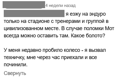 Я наконец-то сегодня залез на свой НОВЕНЬКИЙ из САЛУНУ КАЙО Т2 250 MX ENDURO с невероятной 21 китайской лошадиной силой и раздал по свежей грязи и лужам. Как же это заебись. Ронять не жалко и не страшно. Поднимать легко и быстро. Залезает в любые говны и, что самое главное, вылезает из них. На асфальте теперь будет всё время НЕ ТО.