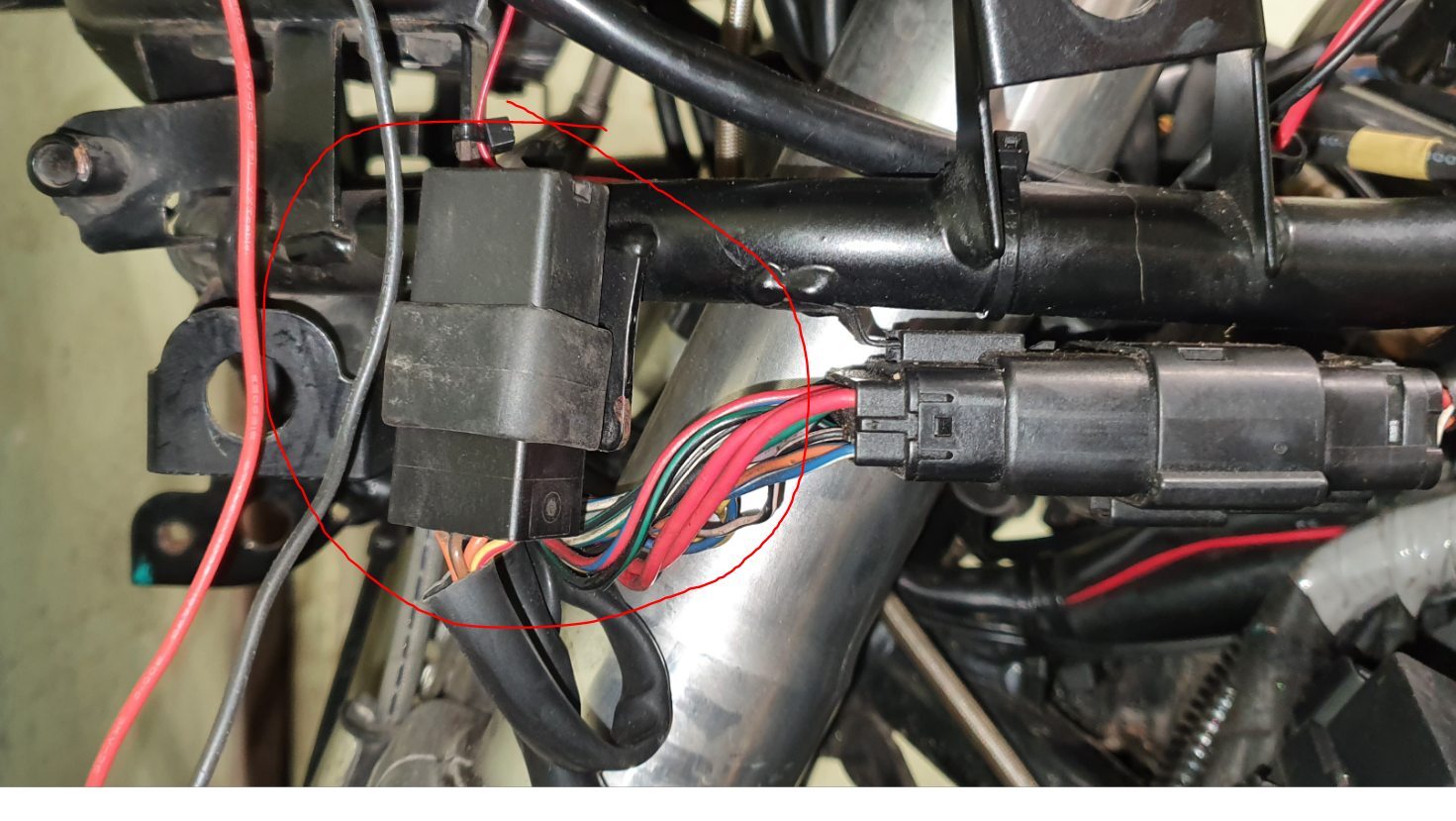 Вывел вниз где планировал и нашёл место для разъёма (естественно его не видно, в этом весь смысл). Но он будет постоянно использоваться, при снятии бака (например для замены воздушного фильтра) и поэтому должен быть легко доступен.