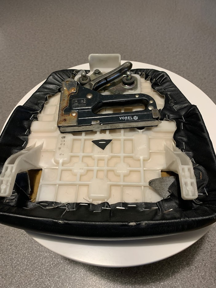 Пистолет всё же говнищем оказался либо скобы слишком мягкие, потому что приходится добивать ту, которая удачно зашла, а которая неудачно - вытягивать. Сук, даже мозоли натер на пальцах от пистолета, а это еще всего лишь половина одной сидушки.