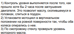 >если не запустишь мотор по новой и не дашь стечь именно в необходимом для мониторинга маслища положении А это ты какую-то тупую хуйню написал. Или тупую хуйню напроектировали конкретно в твоем мотоцикле и у тебя теперь травма.