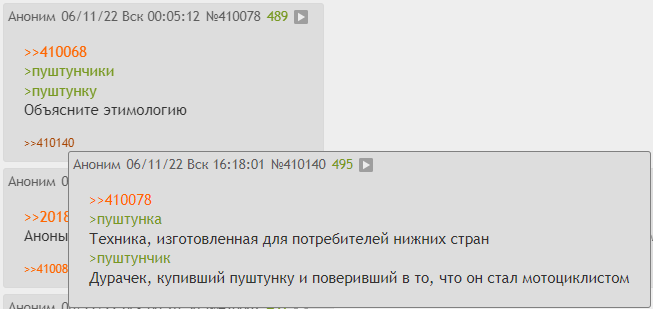 >>410181 >киев за три дня Пример ракунизма на высших уровнях, кстати. Прием "соломенное чучело" так называемое. Сам придумал, сам победил. Аналог в местном нижнем ракунизме - "АТЫ1 ЗАТО2 не ЕЗДИЛ ПО ТУЛЕ3 на 30 топовых мотоциклах НО НЕ МОИХ ЛИЧНО4" обратите внимание на выделенные конструкты 1,2,3,4 ракунизма пуштунизма. Это типичное шаблонное общение среднего ракунобота.
