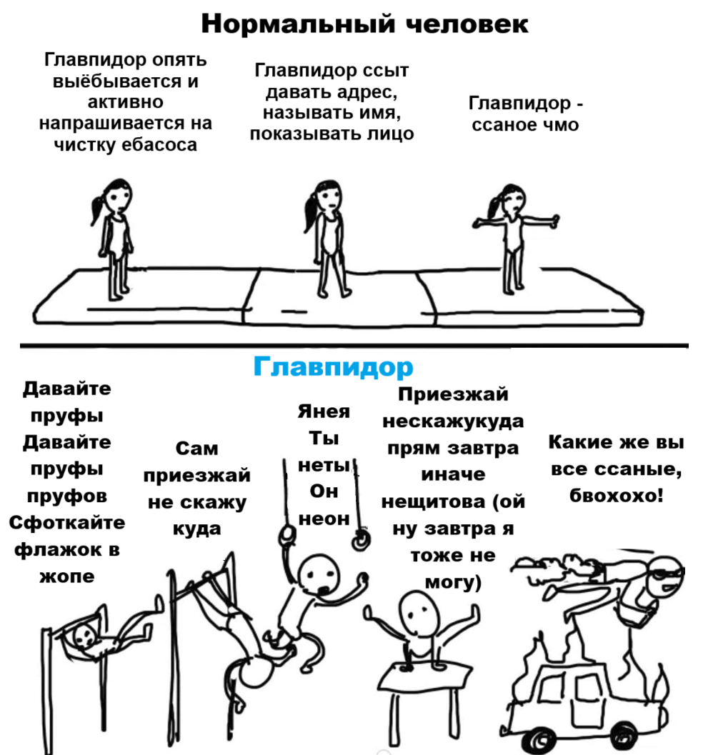 Хотя я уже знаю всё, что мне нужно. Включая твой драгоценный ебальник, бвехехе. Просто лишний раз приятно посмотреть, как ты трусливо прилюдно сикаешься