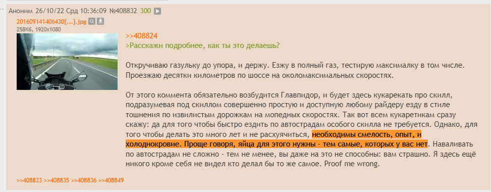 >>437847 Ого какой опытный мотоциклист в тренде. Уже готов впитывать твои мудрости. Я надеюсь, ты хотя бы чуть подготовился к дальнейшему развитию дискуссии с гп.