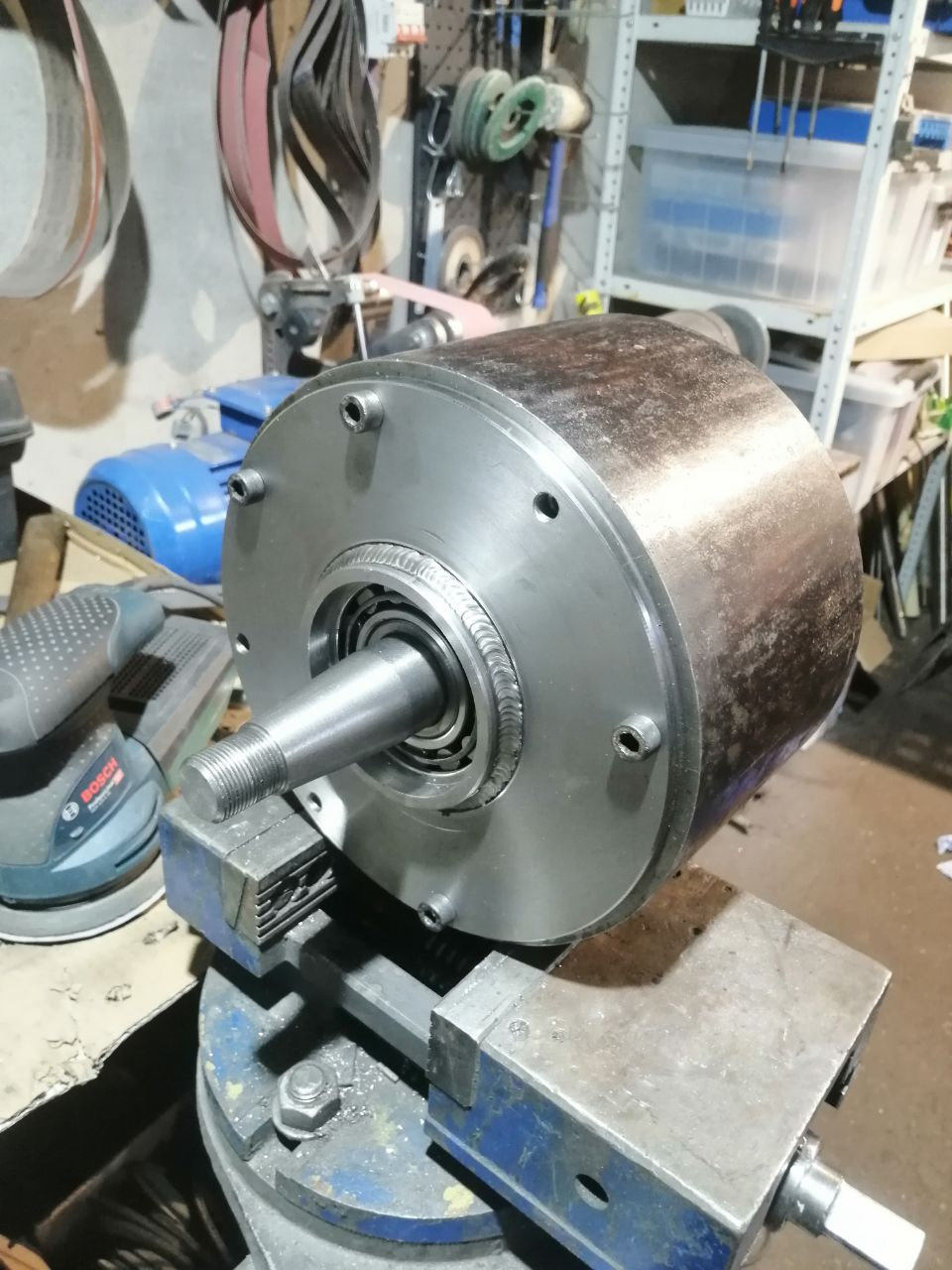 Сделал крышку и приспособление для установки генератора. Почти ровно всё стоит. Где-то магнит внутри трётся о статор (это не вал кривой, это магнит кривой) Остаётся только сотворить маслосистему и можно будет запускать