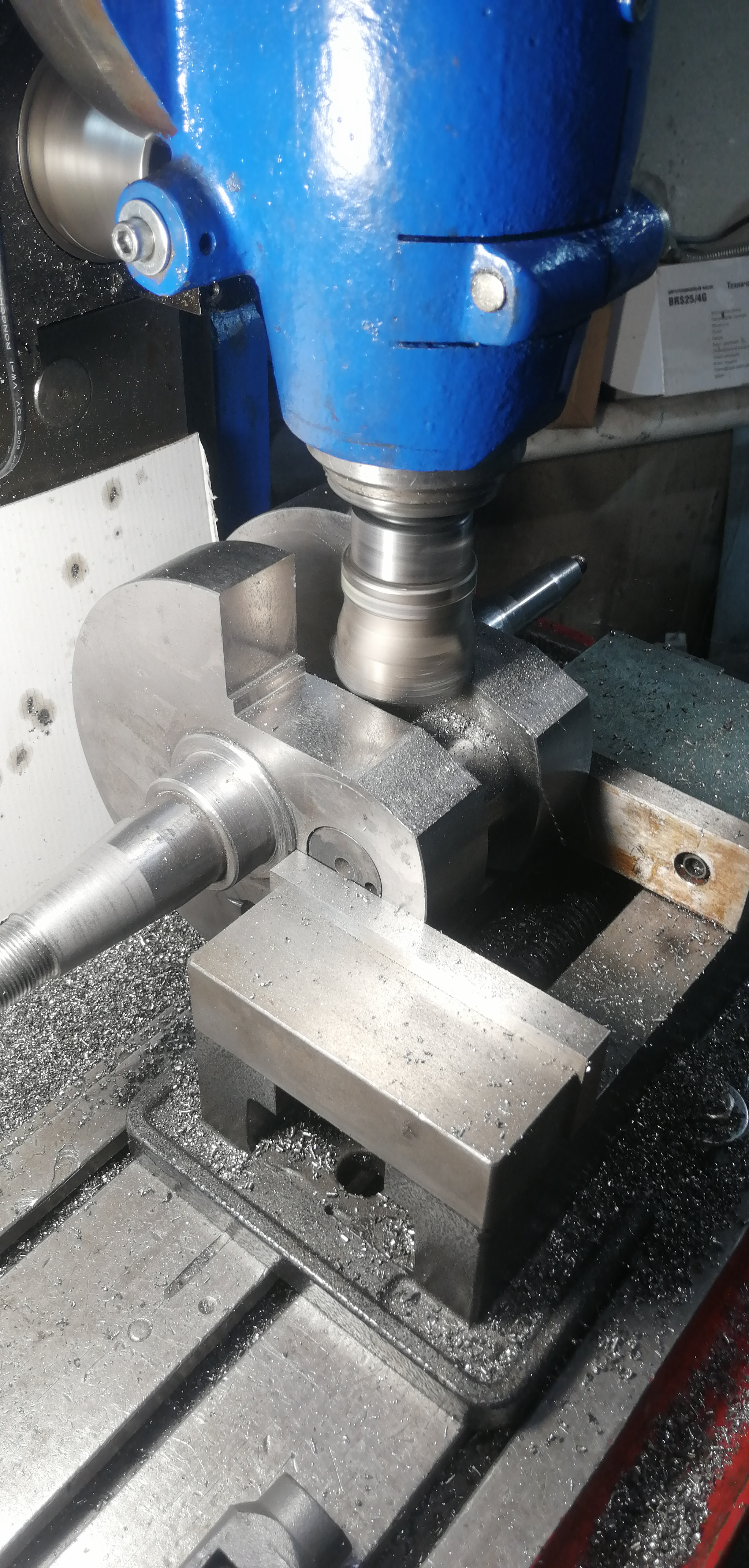 >>511276 На этом изображении видно, что я изготовил поверхность, на которую будет прикручена правая крышка. На правой крышке будут отверстия для подшипников распредвалов, сальник коленвала и статор генератора