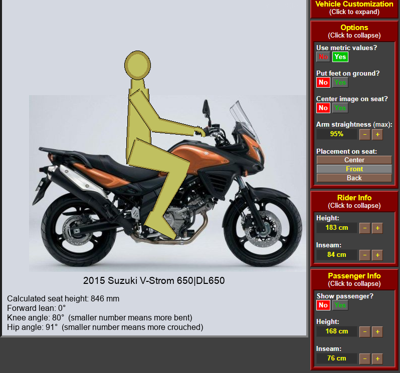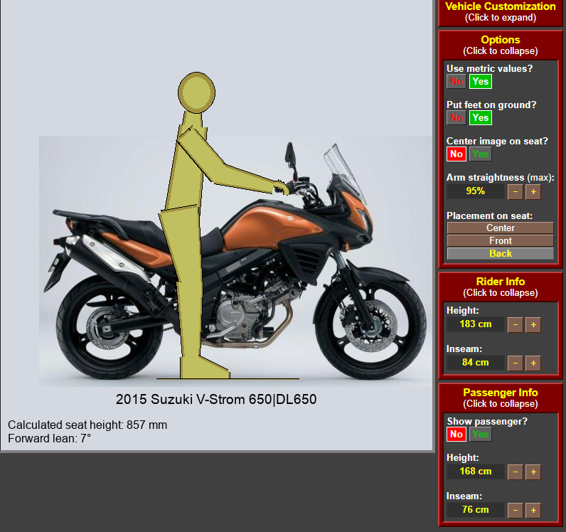 >>469298 Сайклэрго - так себе средство прикинуть, достанешь ли ты ножками до земли на моте или нет. Например, встрём 650 (по крайней мере свежие его версии) - это просто ебейшей ширины диван, на котором сидишь враскаряку. Дохуя удобно при езде, но не факт что даже достав обоими стопами до земли ты будешь стоять уверенно. Из личного опыта (174 см): на африке с более высоким седлом в салуне я без проблем стоял обеими ногами и мог даже ворочать её под собой, а вот сидя на встрёме сразу захотелось сдвинуть булку и стоять на одной ноге. А разгадка проста - у африки в самом узком месте седла оное - практически эндурная лавка, в то время как у встрёма (как и ктм-ных эдвенчуров) по всей длине - роскошный диван для привередливых жоп. Короче, хочешь примерить мот - пиздуй в салун да примеряй. Все эти картинки с рассчётами - хуйня полная. Ну и вообще, с твоим ростом абсолютное большинство мотоциклов будут как раз, даже с учётом того факта что ты ньюфаг и тебе кажется что нужно обязательно двумя ножками плотно стоять на земле при остановке.