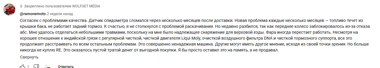 Нахуй вам всрались эти энфилды по 600 тысяч, непонимат. Какой-то мопед для гуков. За эти деньги можно взять полноценный настоящий мотоцикл со всеми пятёрками, а не этот позор.