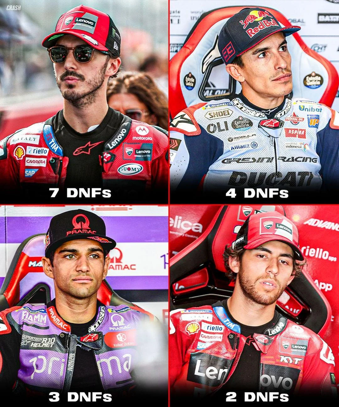 >>499934 КТМ - нестабильное дно, из которого Акоста мечтает ливнуть. Дукати - поставили крест на действующем чемпионе ради "команды мечты" Априлия - нестабильный мотоцикл с победой раз в сезон.